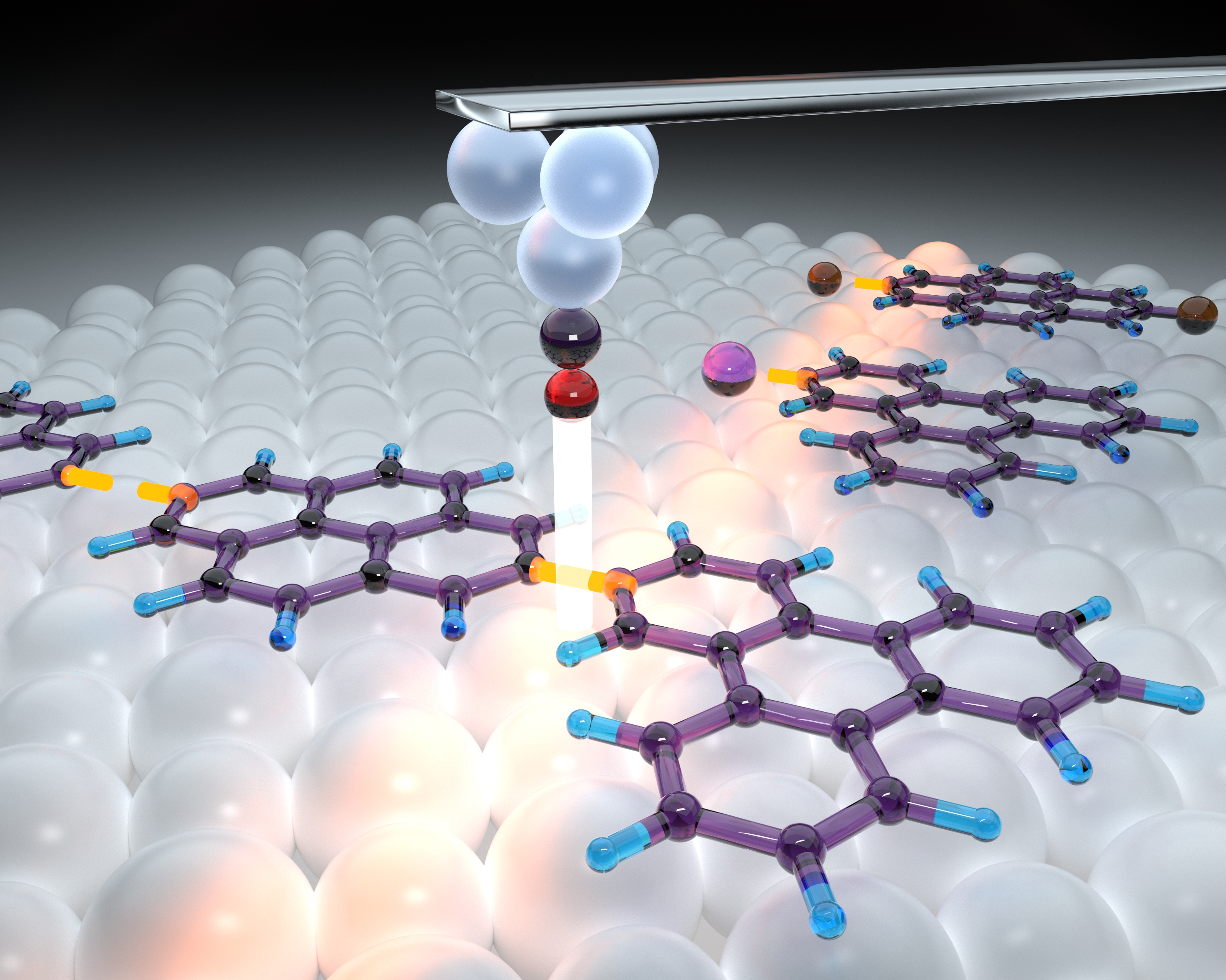 The new approach circumvents both problems. The inert salt surface acts, so to say, as a “non-sticky hand” and the sharp AFM tip serves as a “non-fat finger”. This opens ways for creating new organic nanomaterials and systematic studies of the relationship between their structures and properties. Thereby, it will enable a targeted manipulation of the functionalities of such nanoarchitectures, which is particularly interesting for applications in electronics devices such as organic field effect transistors (OFET), organic light-emitting diodes (OLEDs, e.g. for smartphone displays), or organic solar cells. Furthermore, via this approach new fundamental insights into the mechanisms of molecular reactions on surfaces can be gained, which is important for the emerging field of on-surface synthesis.
