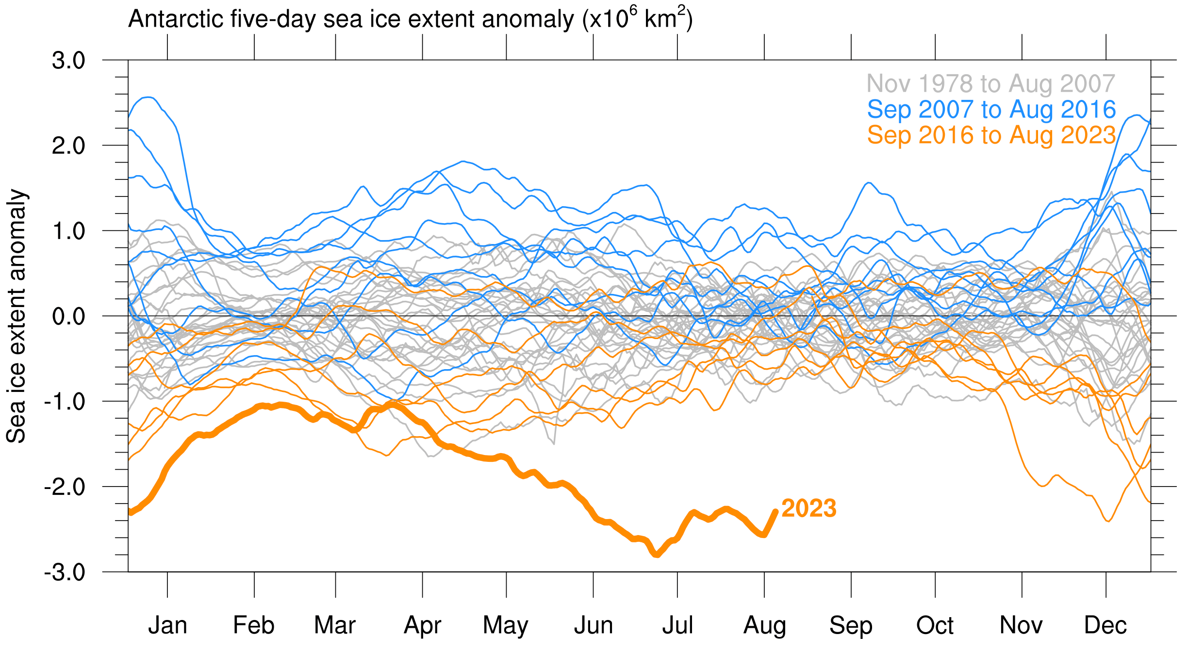 It’s a funny feeling, watching the subject of your research head towards another record. While the community was (and still are) working on understanding the record minimum sea ice in 2022, another record was unfolding in front of us. Climate models have long projected a decline in Antarctic sea ice, and yet, this didn’t make it any less alarming.