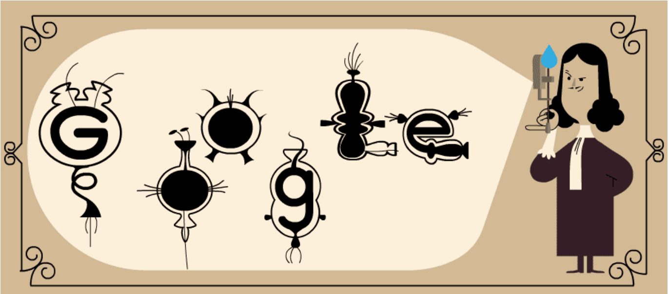 Google, today recognised the genius of van Leeuwenhoek with an inventive and fitting Doodle: