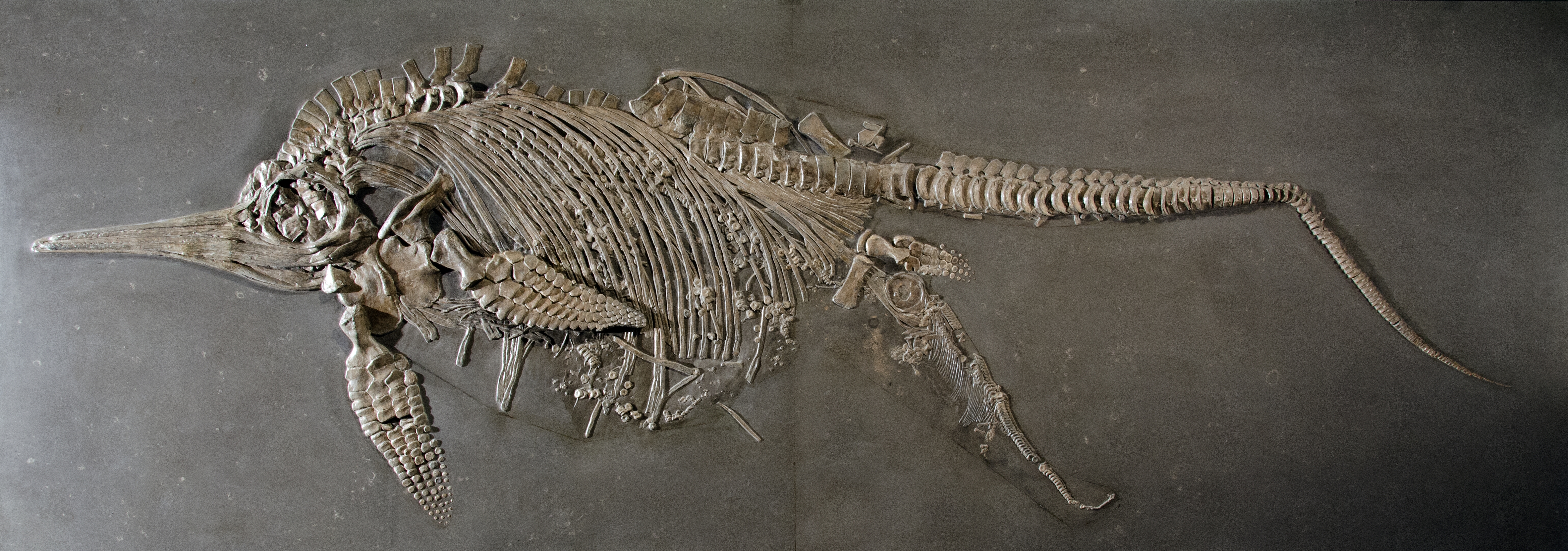 What animal group did we look at: We looked at the extinct clade of Ichthyosauria. These are dolphin-like reptiles that inhabited the seas during the Mesozoic (i.e., they were alive roughly when dinosaurs roamed the land). Ichthyosaurs usually ate fish or squid, which we know because some have stomach content preserved. More importantly, we know from fossil evidence, especially from the famous Holzmaden locality in southern Germany, that these animals gave birth to live young. There is even one specimen preserved with the fetus exiting the birth canal. This specimen can be seen at the Natural History Museum in Stuttgart, Germany and I strongly recommend to everyone to have a look! For this paper we also specifically looked at the early diverging ichthyosaur Mixosaurus. This genus is important for our understanding of ichthyosaur birth as it represents a more derived, but still early form of this group. We were lucky to be able to study three different specimens, which are all housed in the paleontological collections of the University of Zürich.