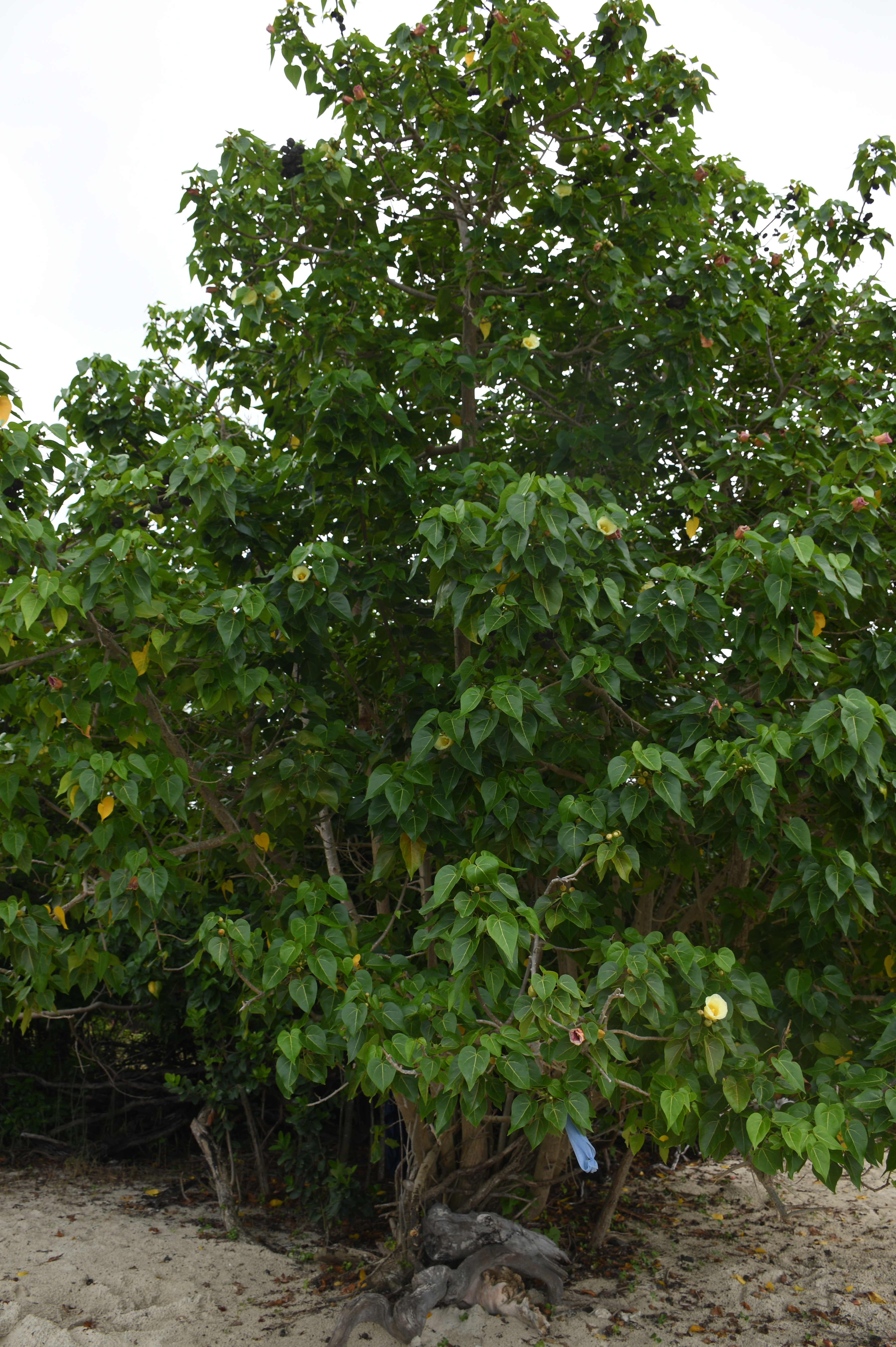 T. populnea wood is now used to construct furniture, musical instruments, kitchenware and canoe paddles, etc., while the bark makes effective rope and caulk. I first encountered T. populnea on a beach in St. John, US Virgin Islands (USVI), a US territory in the Caribbean Sea. Referred to by the local name of haiti-haiti in the USVI, one can also clearly see why it is sometime referred to as the Indian tulip tree, with its impressive flowers.
