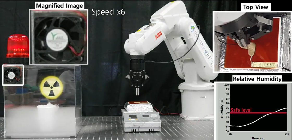 Fig. 2 An emergency electronics repair demonstration is performed by a robot using the conductive healable nanocomposites.
