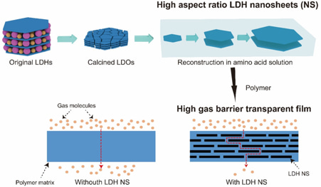 Our experiments have shown the LDH-based barrier coatings to result in extremely low OTR (oxygen transmission rate) and WVTR (water vapour transmission rate) values, and their suitability has been further confirmed by theoretical calculations. We have quantified this improvement of barrier properties by introducing a barrier improvement factor (BIF), and determined that compared to commercial metallised films, our non-toxic LDH nanosheet-based coatings give a BIF that is 40 times higher.