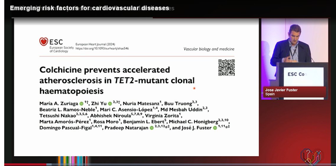 Clonal hematopoiesis of indeterminate potential (CHIP) is driven by acquired somatic mutations in hematopoietic stem and progenitor cells, leading to a significant proportion of mutant immune cells that may influence inflammatory responses central to CVD. Studies in humans and mouse models have shown that multiple CHIP-associated genes contribute to atherosclerosis. At the "Emerging risk factors in CVD" session, Fuster introduced two new research articles from his group on the topic that were published simultaneously with his presentation.