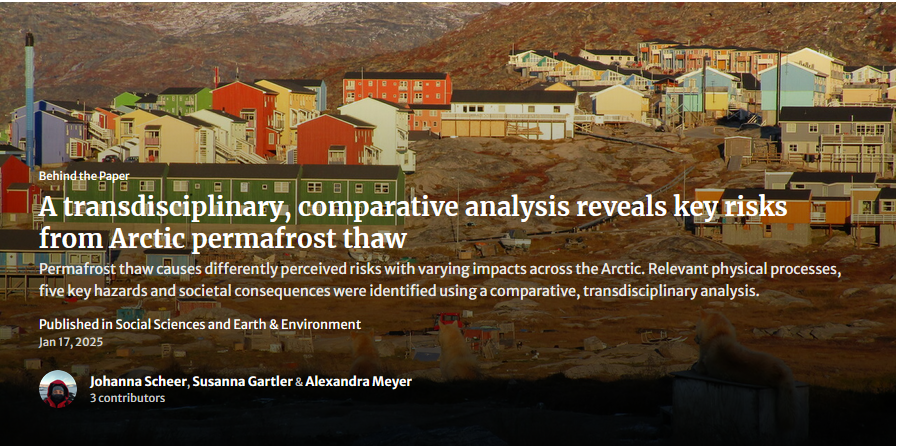 A Behind the Paper post written by @Johanna Scheer , @Susanna Gartler and @Alexandra Meyer explore the work behind their recent publication detailing how permafrost thaw threatens Arctic regions damaging infrastructure, disrupting supplies, and endangering water and food security. Scientists highlight urgent risks and the need for adaptation. This study is published in Communications Earth & Environment. Find out more about the threat of permafrost thaw.