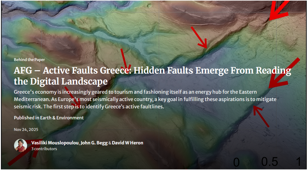@Vasiliki Mouslopoulou takes us on a journey beneath Greece’s iconic landscapes - from mountains and gulfs to ancient settlements - to uncover thousands of previously unmapped active faults. Using high-resolution Digital Elevation Models, her team translated subtle topographic clues into Greece’s first consistent, nationwide geomorphology-based active fault database published in Scientific Data. More than half of the 3,815 mapped traces were identified for the first time, offering an unprecedented digital portrait of a restless nation. Read the full Behind the Paper to see how pixels, geological insight, and digital landscapes are reshaping how Greece anticipates and manages seismic risk.