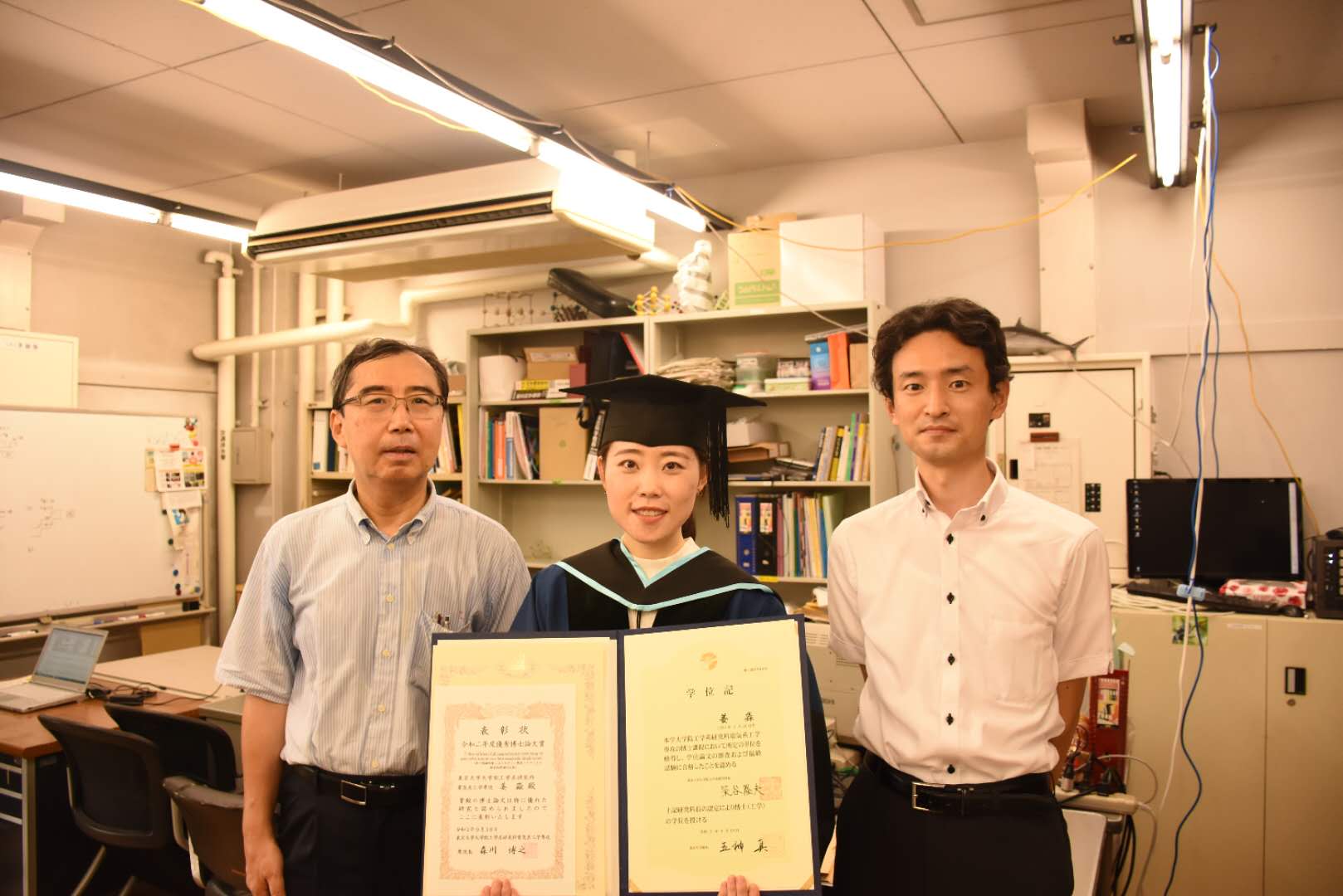 Dr. Miao Jiang (Center), Prof. Shinobu Ohya (Right) and Prof. Masaaki Tanaka (Left).