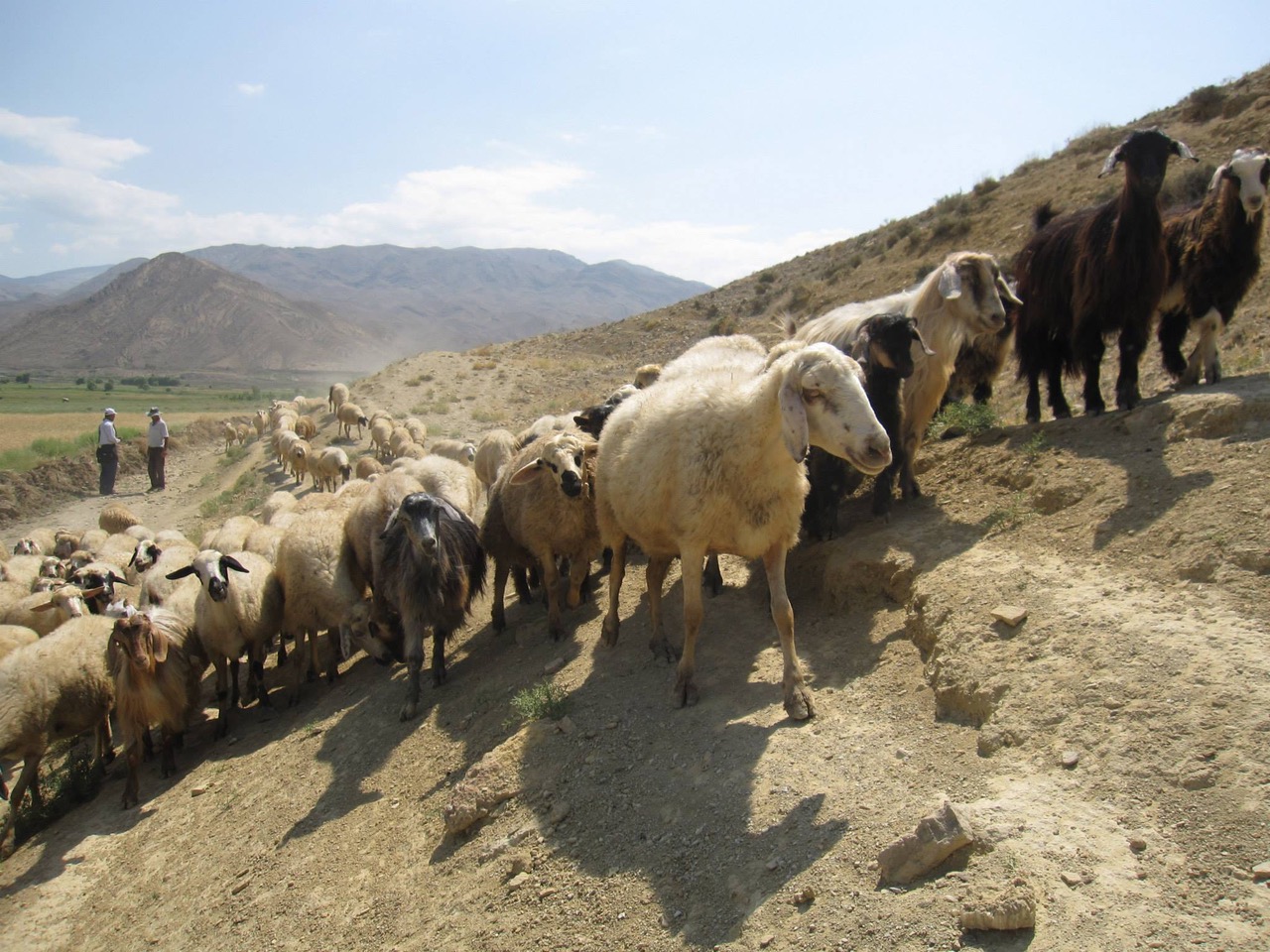 Sheep being herded today in Azerbaijan. Sheep and other dairy livestock have long been integral to daily life in the foothills north and south of the Caucasus mountains. (Image credit: Emily Hammer)