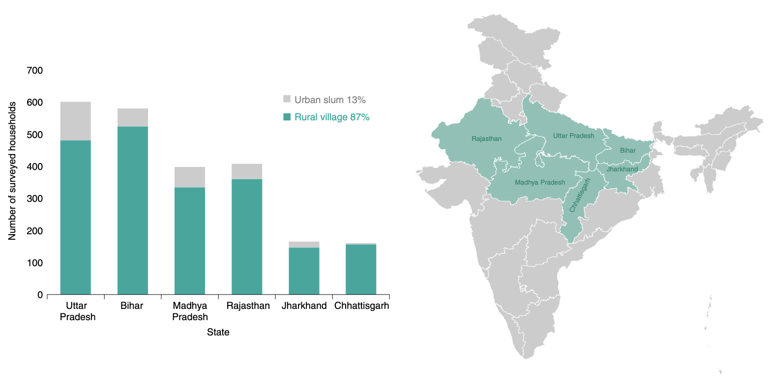 Despite near-universal grid access, significant challenges remain for achieving the SDG 7 goals of reliability, affordability, and sustainability. Unanticipated outages and billing/metering issues are common in rural areas due to high transaction costs. In addition, 80% of the current energy demand is still being met by coal, oil, and solid biomass, and more than 300 million Indians rely on solid fuels for cooking. These statistics highlight the need to improve our understanding of effective government policies for accelerating the transition toward more sustainable energy sources. Beyond energy access, significant gaps remain in women's economic participation and health. The six sample states, Bihar, Chhattisgarh, Jharkhand, Madhya Pradesh, Rajasthan, and Uttar Pradesh, are among those with the lowest socioeconomic condition and highest health burdens from household air pollution. As such, our findings could provide new insights on making sustainable energy policies more inclusive in the Global South.