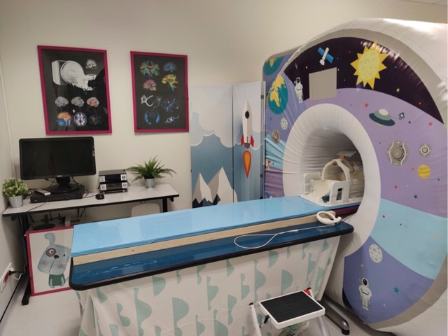 To fill this gap, our research team used functional magnetic resonance imaging (fMRI) to measure the brain activity associated with word-level reading in 8-year-olds, while also gathering information about the children’s home literacy environments. The experiment involved two different sessions. In the first session, we invited parent-child dyads to visit our lab for an extensive behavioral assessment of children's skills (including vocabulary, IQ or reading) and asked parents to fill out a comprehensive questionnaire assessing how often they engaged in different literacy activities with their child at home. During that session, we also familiarized children with the fMRI environment using a mock scanner. Children then came back to the lab a few days later for a second session, entirely dedicated to the “real” fMRI scanning. In this scanner, children simply viewed series of words that could be either identical or different. This task allowed us to measure how the brain of each child automatically responded to the presentation of words.