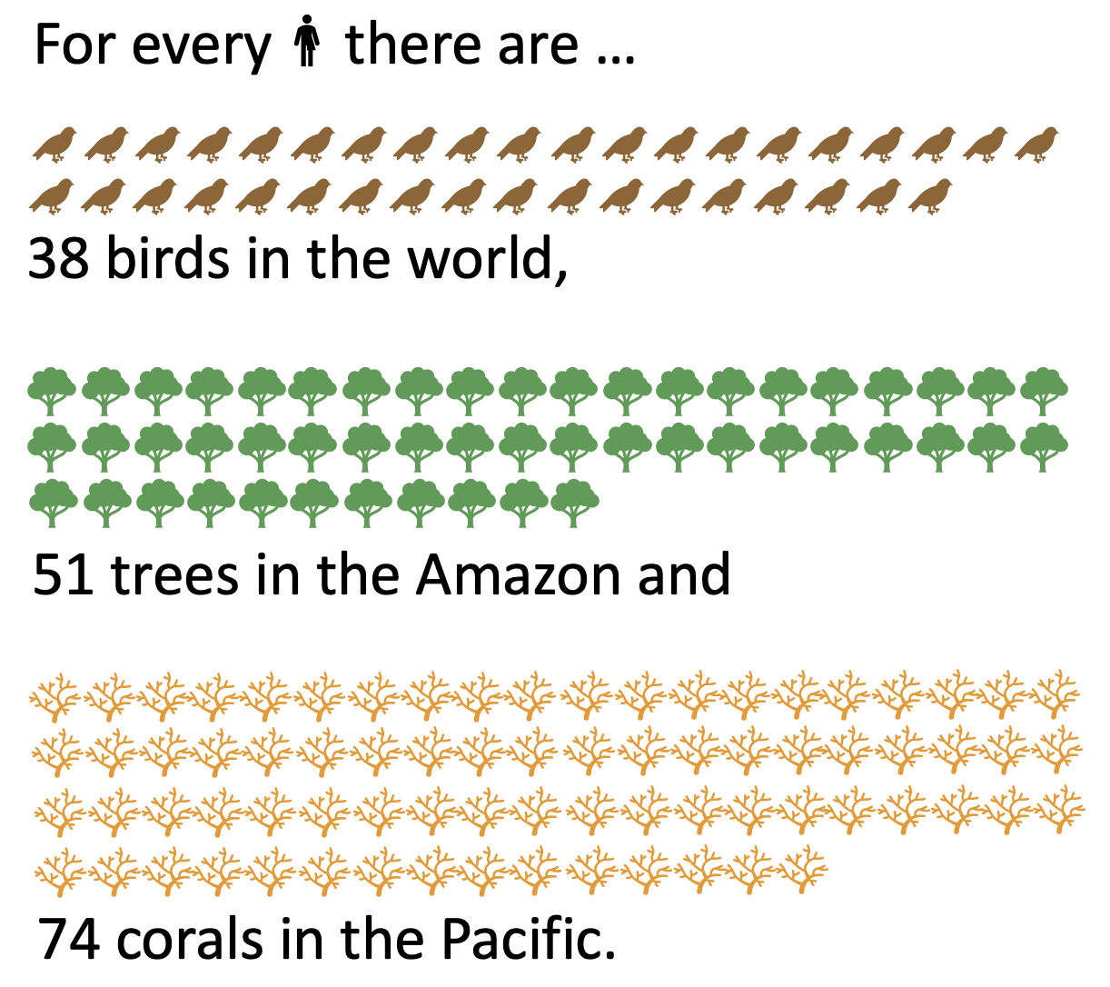 So how many corals are there in the Pacific Ocean? According to our best estimates, half a trillion! There are thus approximately as many coral colonies in the Pacific Ocean as there are trees in the Amazon, and more corals than birds in the world. The population sizes of one fifth of the 318 species we examined each exceed one billion individuals. The eight most common species even outnumber the global human population.