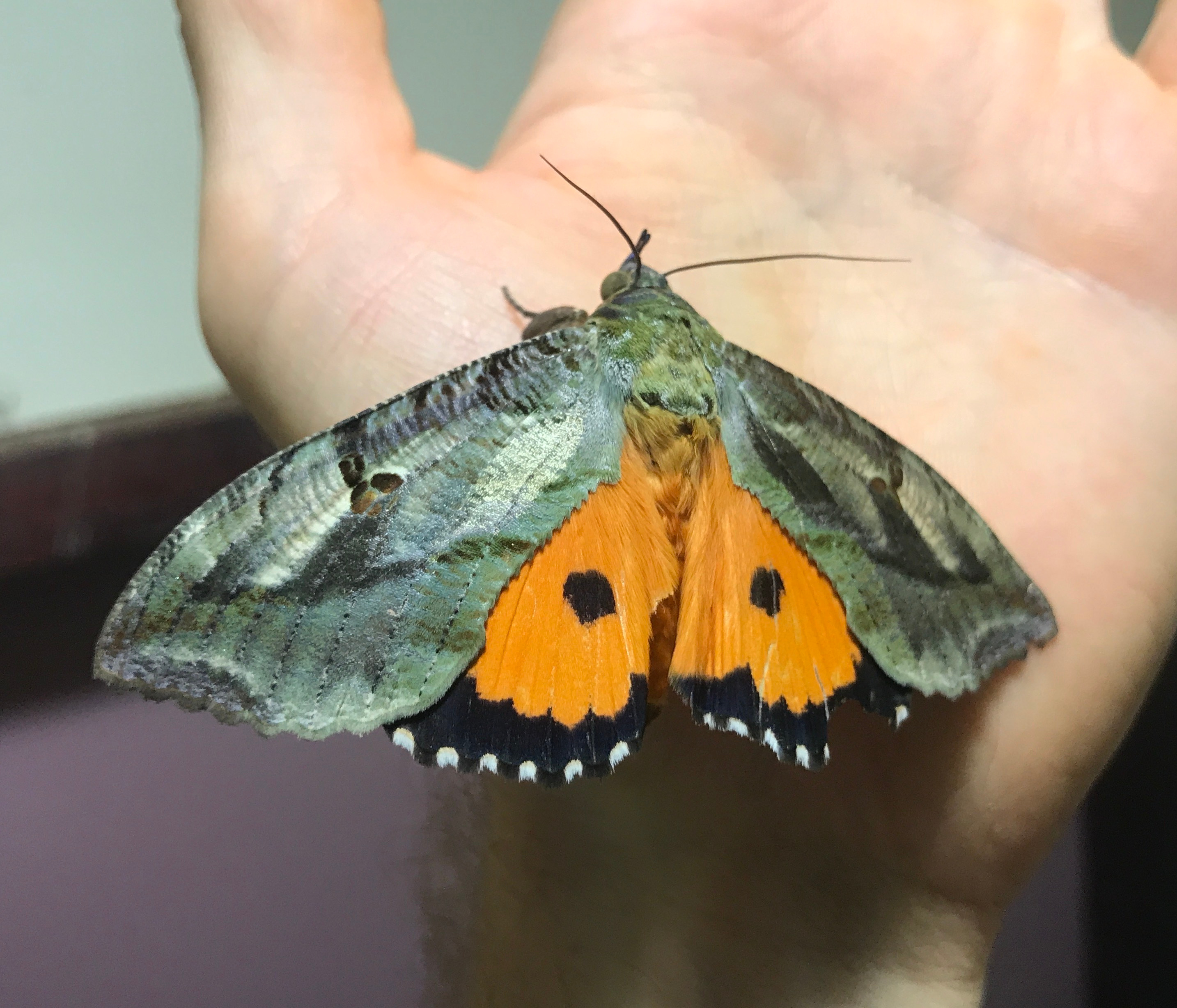 Shockingly, we found 436 species of moths and butterflies. A few moths were vibrantly coloured, and nearly the size of a human hand. For example, three species of large fruit-piercing moths in the genus Eudocima, fed on the neighbourhood fruit trees.