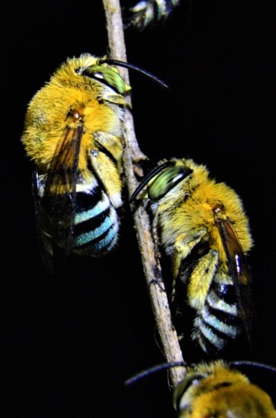 But these invasive pests were exceptions. The overwhelming majority of the animals in our house and yard were native, and most of these native species were insects. This included several bee species, like native stingless bees, blue-banded bees, and fluffy teddy bear bees. The latter two species slept in the hedges under our windows at night.