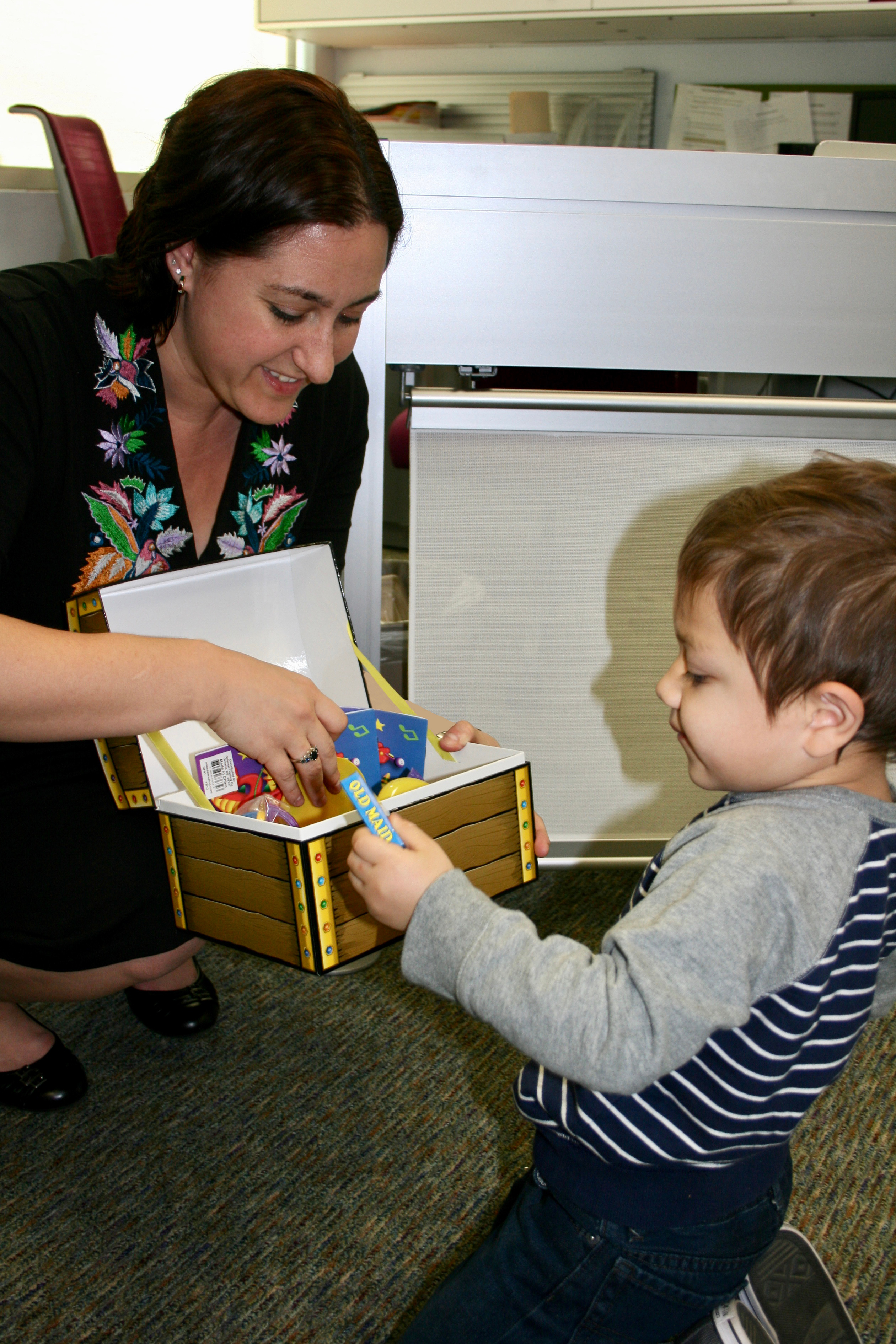 Photo: I am helping one of our participants choose a prize after finishing the study. Photo © Ainsley Losh