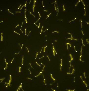 Figure 1. M. xanthus cells expressing a RomX-YFP fusion illustrates the polar localization of RomX.