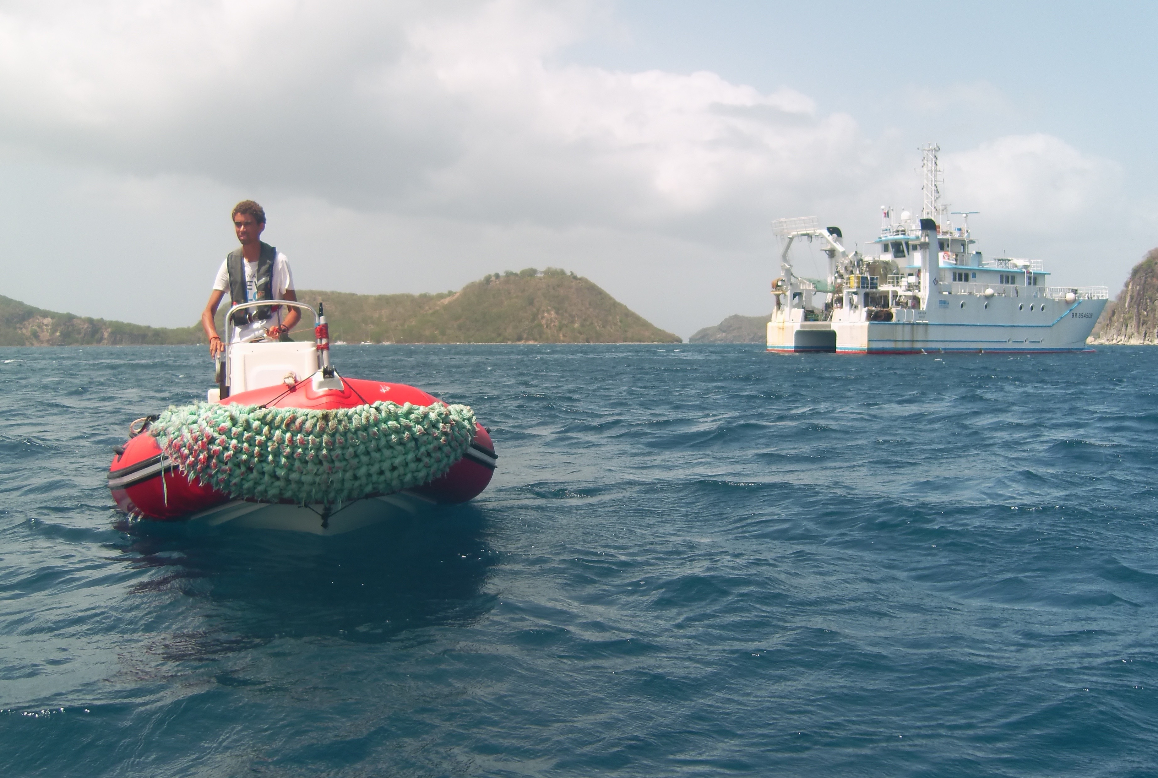 Picking up divers in the Lesser Antilles, with the R.V Antea in the background. Photo: Sarah Griffiths