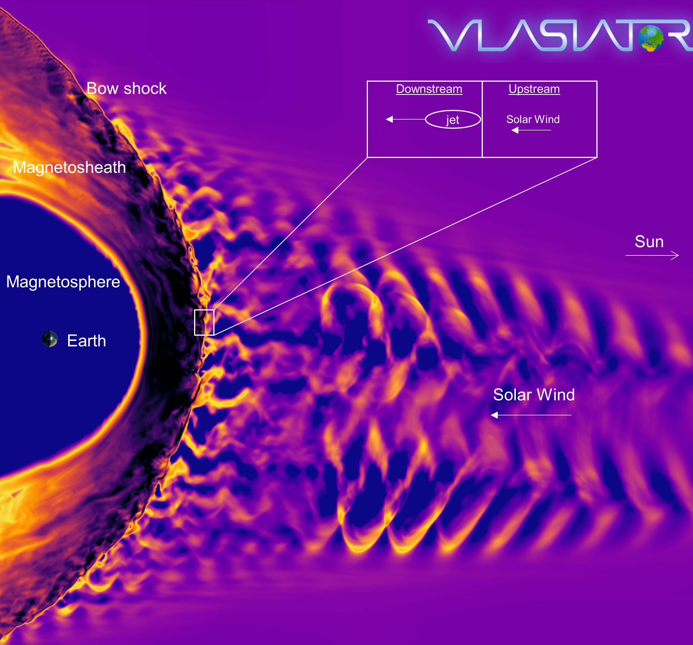 While this is what typically happens, it is not the full story. Small-scale plasma flows can be found in the magnetosheath, having dynamic pressure much higher than the surrounding plasma and the solar wind. They can have velocities similar to the solar wind values, upstream of the shock, while they can be denser than the downstream magnetosheath. These are the so-called magnetosheath jets. When they reach the magnetosphere, they can have a variety of effects. The most prominent ones include magnetic reconnection, the excitation of plasma waves, or even geomagnetic substorms. However, while jets have been observed for many years, we are still not sure how they manage to form and what allows them to hold such unique properties compare to their surrounding plasma.