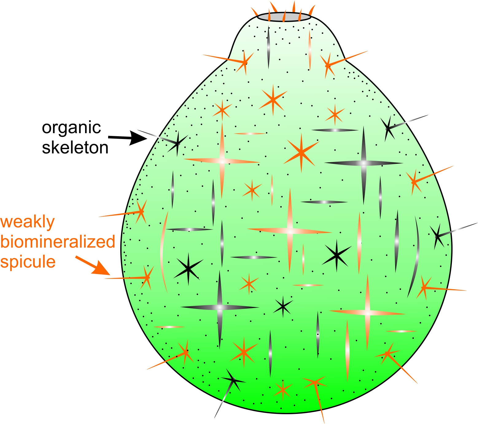 Fig. 3. Morphological reconstruction of early sponges with transitional, weakly biomineralized spicules.
