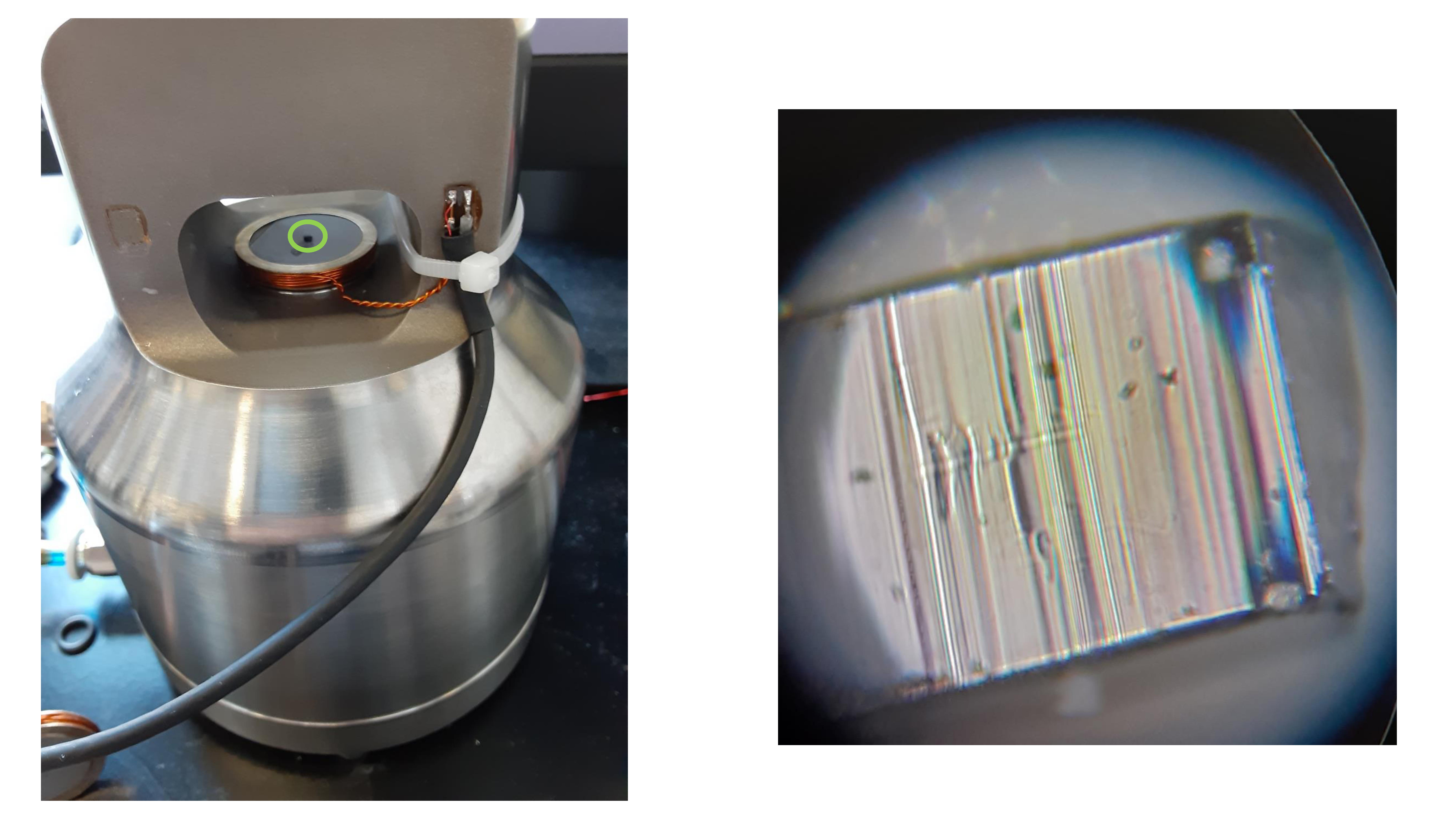 It turns out that there is, and it is also very famous (in the right circles) – strontium titanate (SrTiO3), known as STO. At room temperature, STO can be deformed by the astonishing amount of ten percent under compressive stress, while still looking more or less like a shiny crystal (figure 1). Even better, STO is widely used as a substrate for thin-film growth, so you can just buy crystals of it online; thus, instead of destroying priceless home-made cuprate samples, we quickly switched to destroying a lot of quite reasonably priced STO.