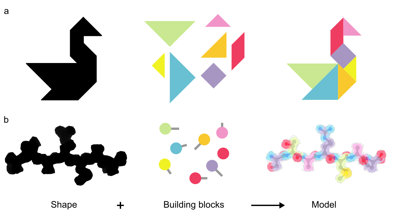 Figure 1: A regular tangram (a) and a molecular tangram (b)