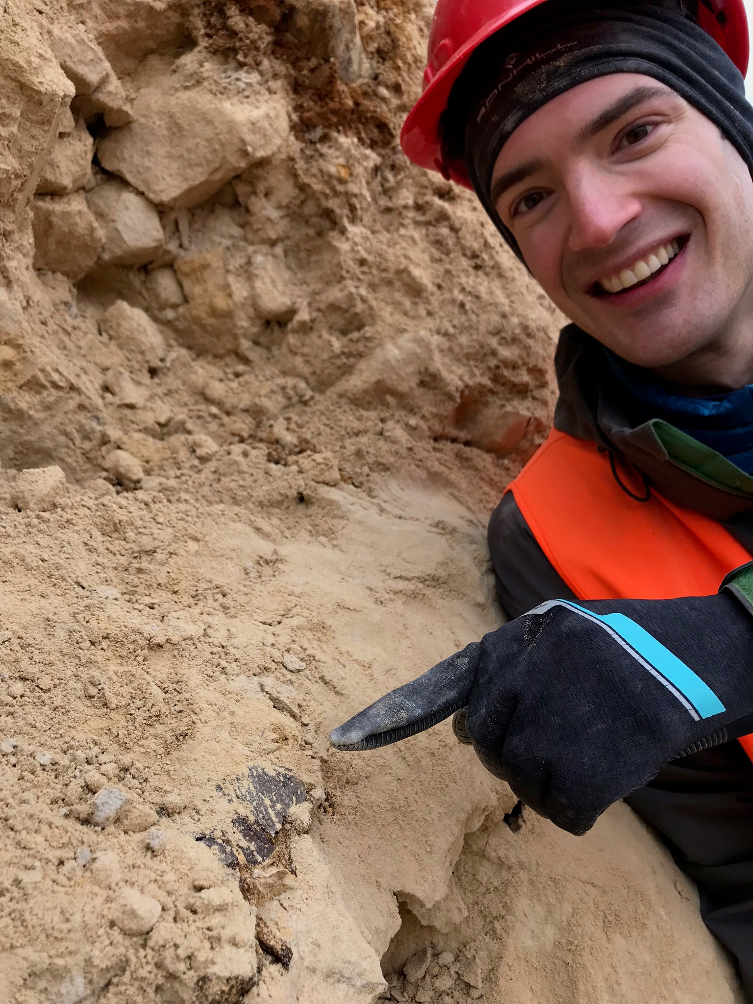 Looking for new fossils in the Type Maastrichtian of Belgium. This is the edge of the shell of a giant marine turtle from 66.7 million years ago named Allopleuron. Photo credit: Johan Vellekoop.