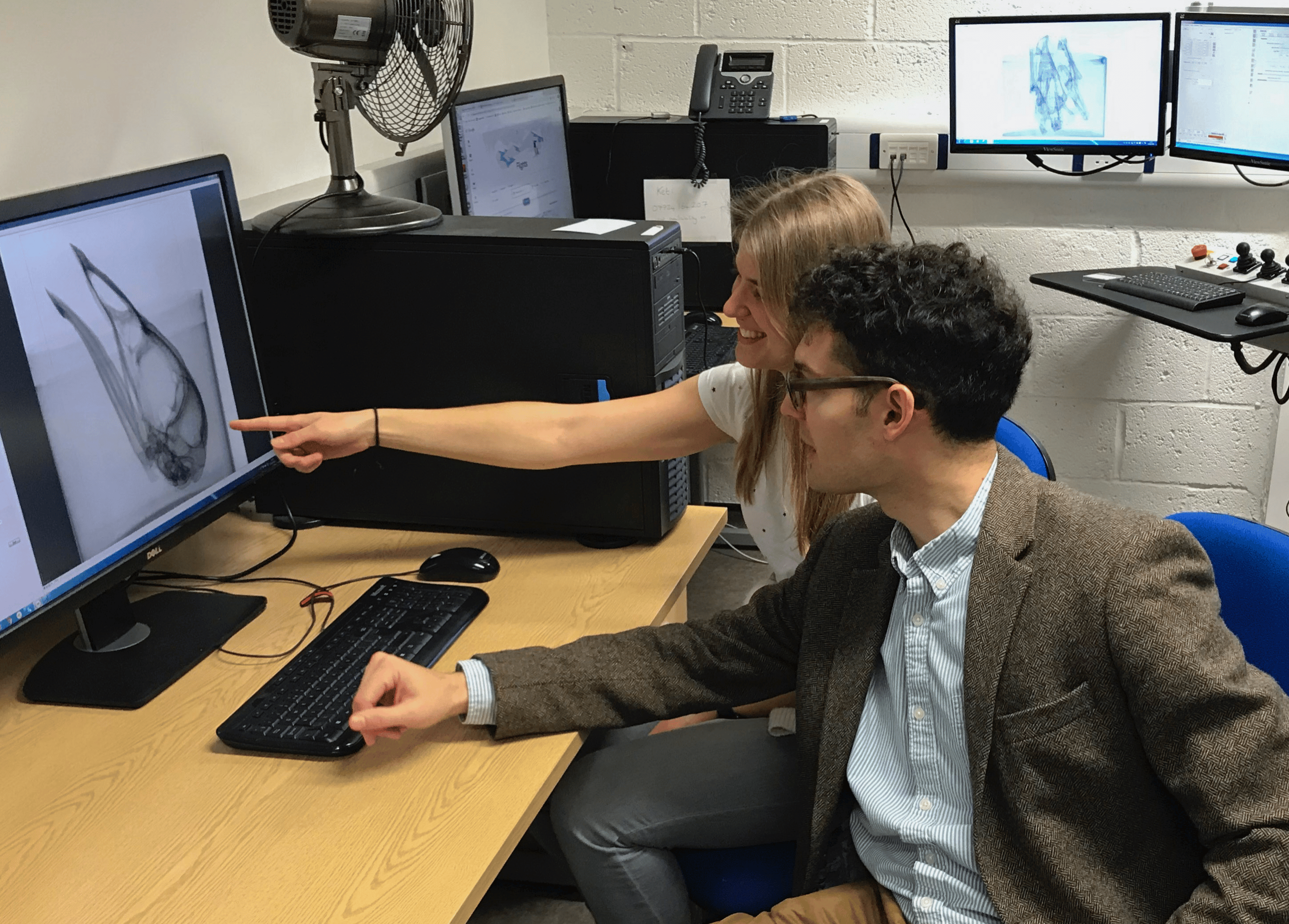 CT scanning a Malleefowl skull with PhD student Lizzy Steell at the Cambridge Biotomography Centre. © Daniel J. Field.