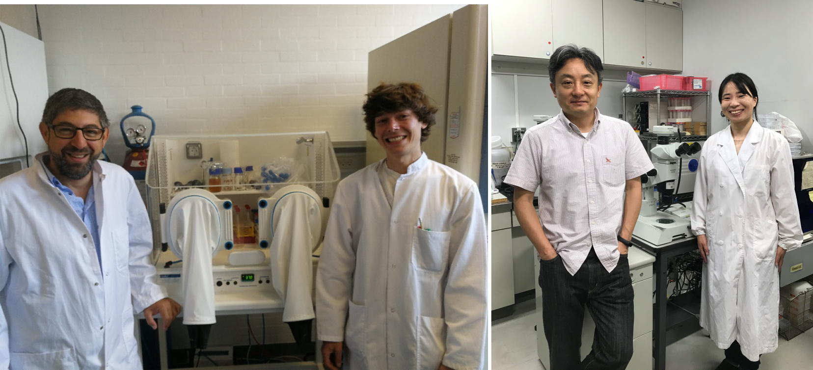 (Left) Professor Maher Abou Hachem and Michael Pichler at DTU; (Right) Professor Shinya Fushinobu and Assistant Professor Chihaya Yamada in the protein crystallization facility at Tokyo University.
