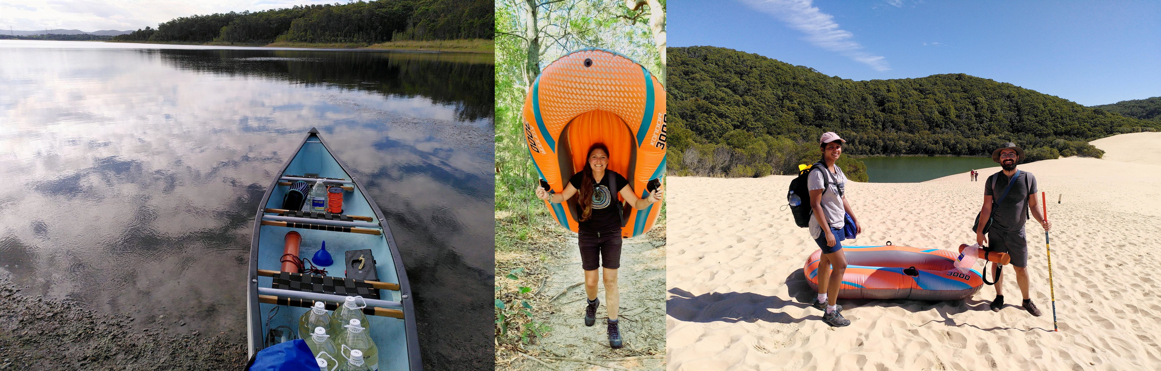 Next came Australia, where we selected eight distinct freshwater and brackish lakes in collaboration with Dave Hamilton from the Rivers Institute in Brisbane. Sampling was a bit more challenging; we (Clafy Fernandes, Paul Layoun and I) rented a canoe to sample two reservoirs near Brisbane, bought a small inflatable raft, and went on a road trip along the Sunshine Coast from Brisbane to Bundaberg. Three of the sites were on K’gari (Fraser Island), that is famous for its dune lakes, and luckily, we received sampling permits and the blessings from the Butchalla people just in time. The dune lakes were spectacular, but I never thought that we would have to hike with our inflatable boat through rain forests and endless sand dunes to reach them - and to carry liters and liters of water for metagenomic filtration back to our lodge. Also, our raft turned out to be rather flimsy, first a paddle broke resulting in a troublesome time to reach the shore on Lake Boomanjin, and finally it sank during our last sampling on Lake Cootharabra. Fortunately, this lagoon is very shallow (~1 m), so I could simply walk back to the shore while dragging the remains of the raft with our precious water samples. We balanced these sampling adventures by chilling on beautiful beaches, observing kangaroos, opossums, dingoes, mantas, sharks and other native fauna in their natural habitat and enjoying delicious sea food.