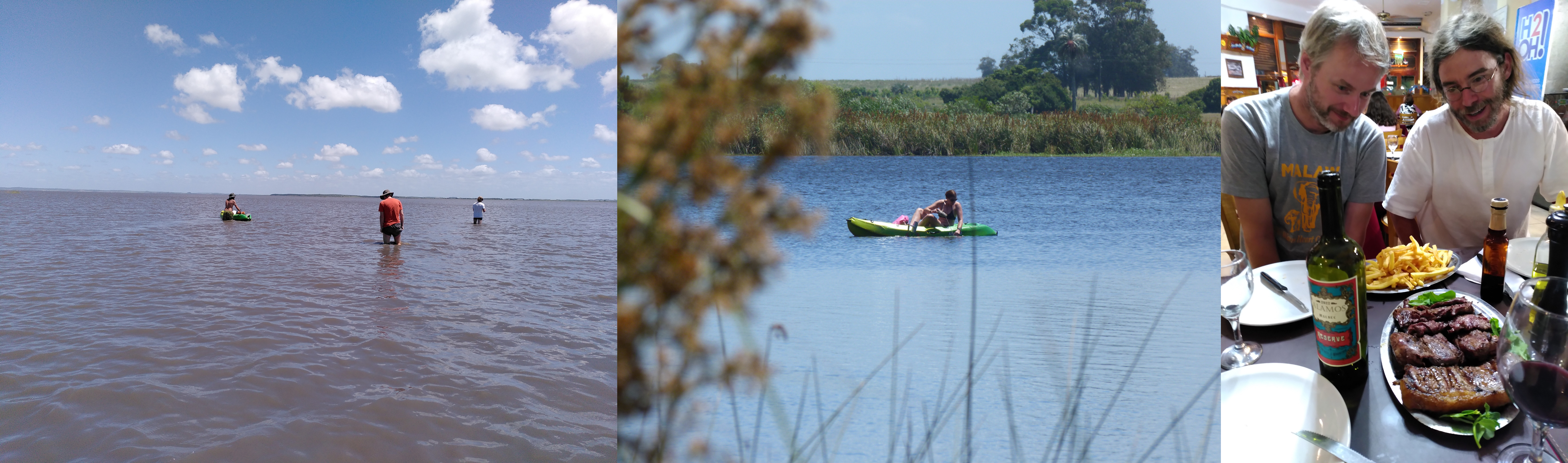 Our final destination was South America. Also here, we had to considerably modify our initial plans, first we had to postpone the trip because of VISA issues, then we had to change the sampling sites. Originally, I planned to sample deep Patagonian lakes with collaborators from Bariloche in Argentina. However, after the elections in 2023, the new president significantly reduced scientific funding, and our colleagues were forced to cancel our planned visit because of severe budget cuts. Desperately, I reached out to Cecilia Alonso (a former colleague from my PhD times in Zurich), now at the Centro Universitario de la Región Este in Uruguay, and she immediately offered help by proposing to sample some very interesting coastal lagoons. As our flight tickets were already bought and Uruguay is easy to reach by ferry from Buenos Aires, we (Markus Haber, Vojta Kasalický and I) were on our way to South America three weeks later. Cecilia didn’t promise too much; the coastal lagoons were amazing, but also shallow and easy to sample by boat with local fishermen or by kayak; at Laguna Negra we could simply walk to our sampling spot, dragging the kayak with equipment behind us. Only one minor incident happened when the kayak flipped in Laguna de Briozzo, fortunatley, Juan Zanetti is not only microbial ecologist, but also a lifeguard and he swiftly rescued our sampling bottle from sinking. And as on all other sampling trips, we enjoyed great food (the best steaks ever!), stunning landscapes and even had a few extra days for sightseeing in Montevideo, Buenos Aires and the Iguazu Falls.