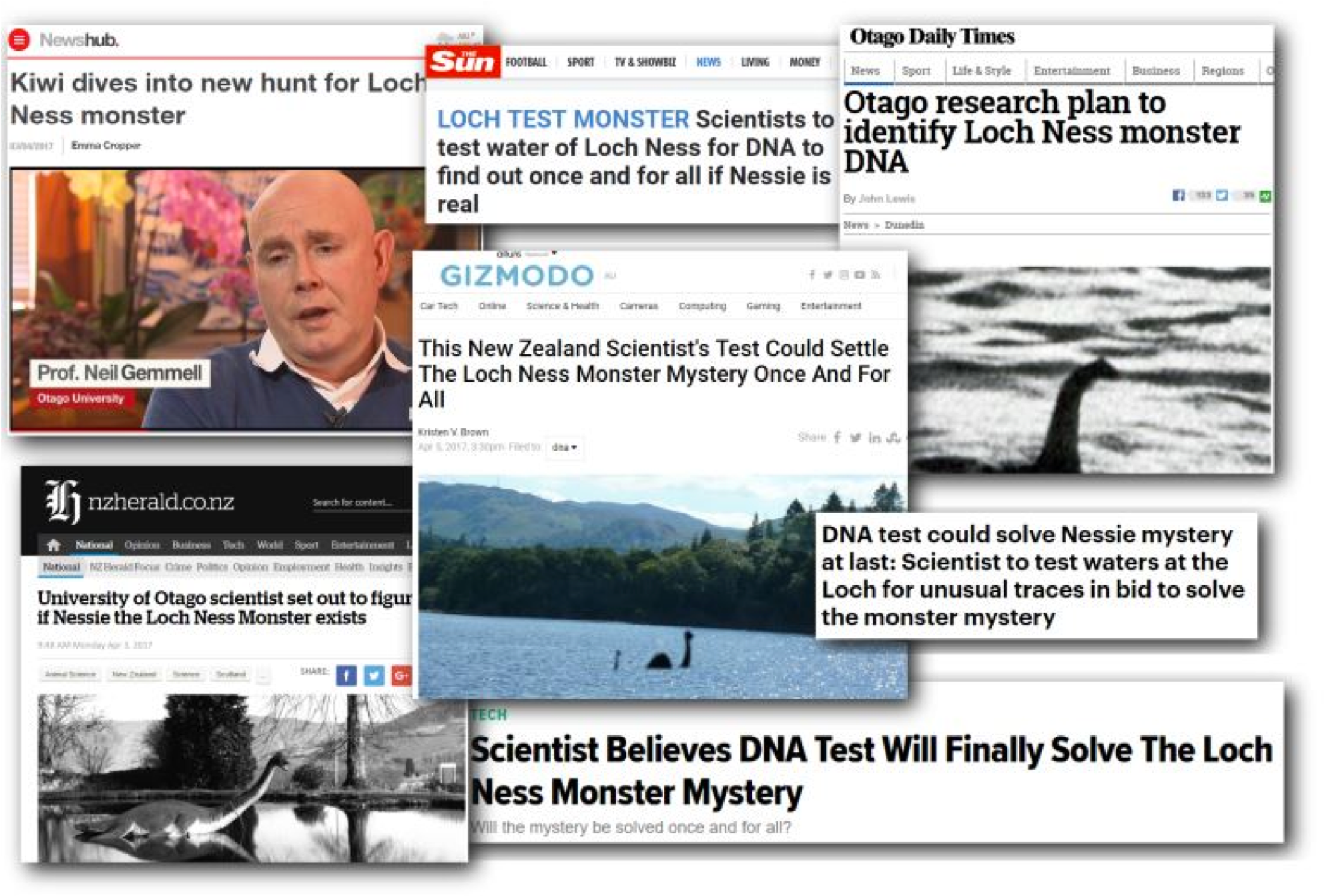 The turning point for me arrived a morning after the initial media flurry in New Zealand. Dropping my son off at school I was surprised to have a large posse of 8-and 9-year-olds telling me that they had seen me in the local paper and on TV. Given their obvious interest I asked them what they thought of the idea of hunting for the Loch Ness monster using new DNA approaches. The answer “we think this is the coolest thing ever” resonated with me. This was cool, it was fun, and it was a magnificent opportunity to engage the public, particularly kids, in the scientific process.