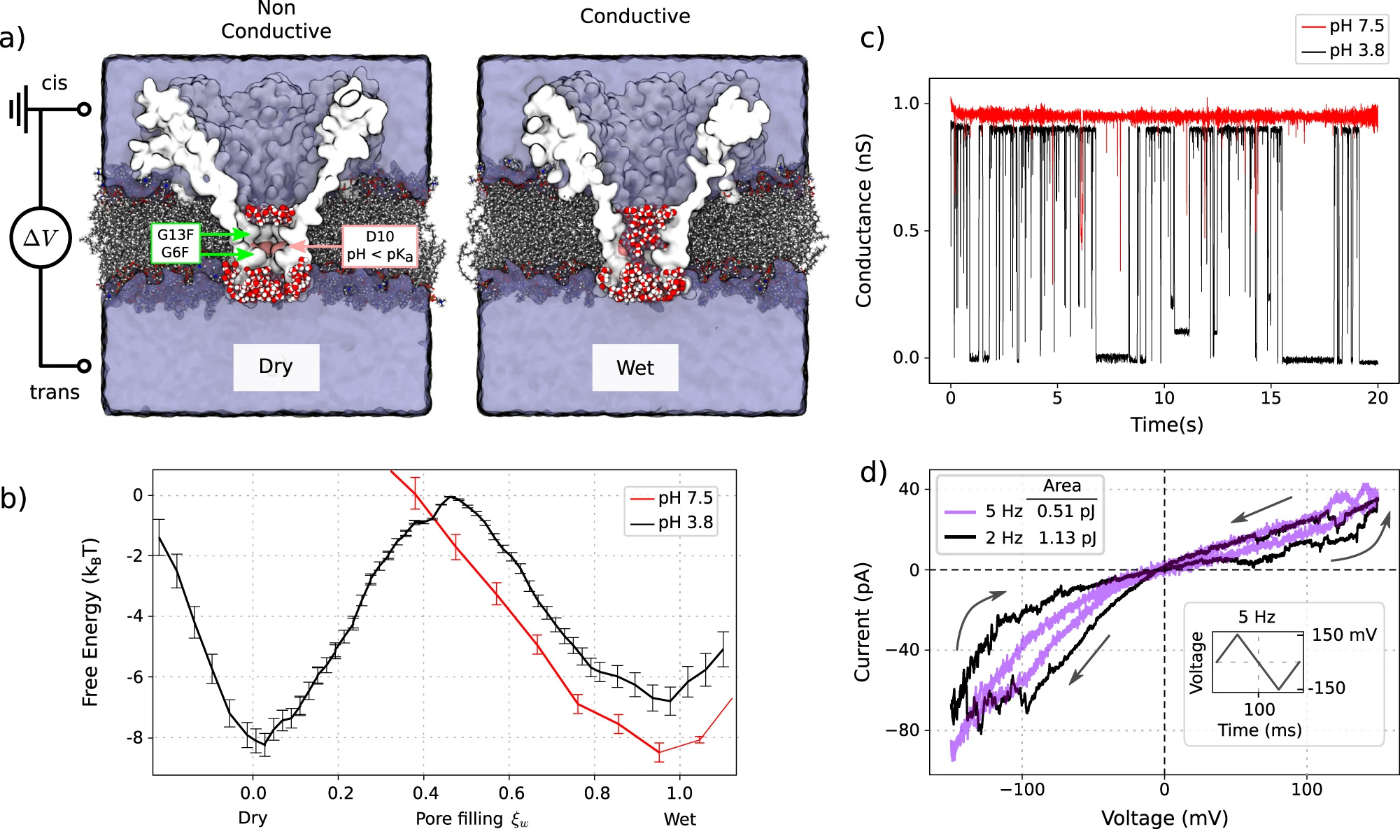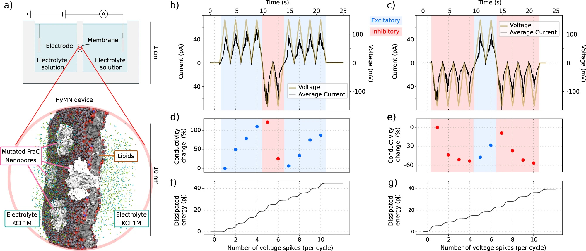 Electrophysiological experiments also confirmed this, with single pore recording showing spontaneous switching between conductive and non-conductive states. This lead us to perform alternating current experiments, which indeed showed the expected memristive behaviour.