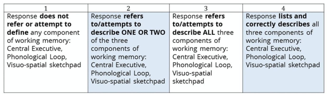 Later, I analyzed the students’ written responses to look for other evidence of changes in their understanding of the working memory concept. I created a short rubric to score students’ pre and post writing responses:
