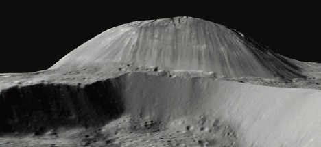 Ahuna Mons, a 4-km-tall mountain on Ceres observed by the Framing Camera on NASA's Dawn mission.