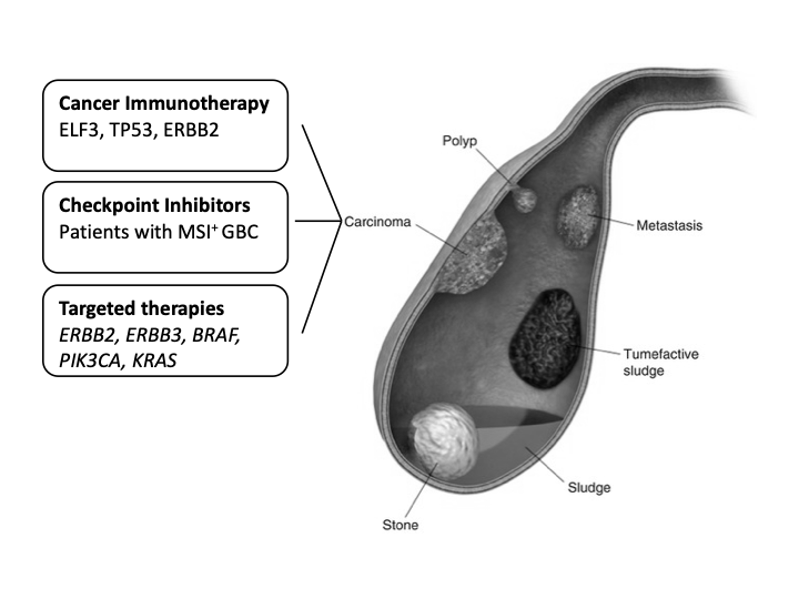 Figure 2. Actionable targets and potential immunotherapy strategies to treat GBC. Image adapted from https://radiologykey.com/