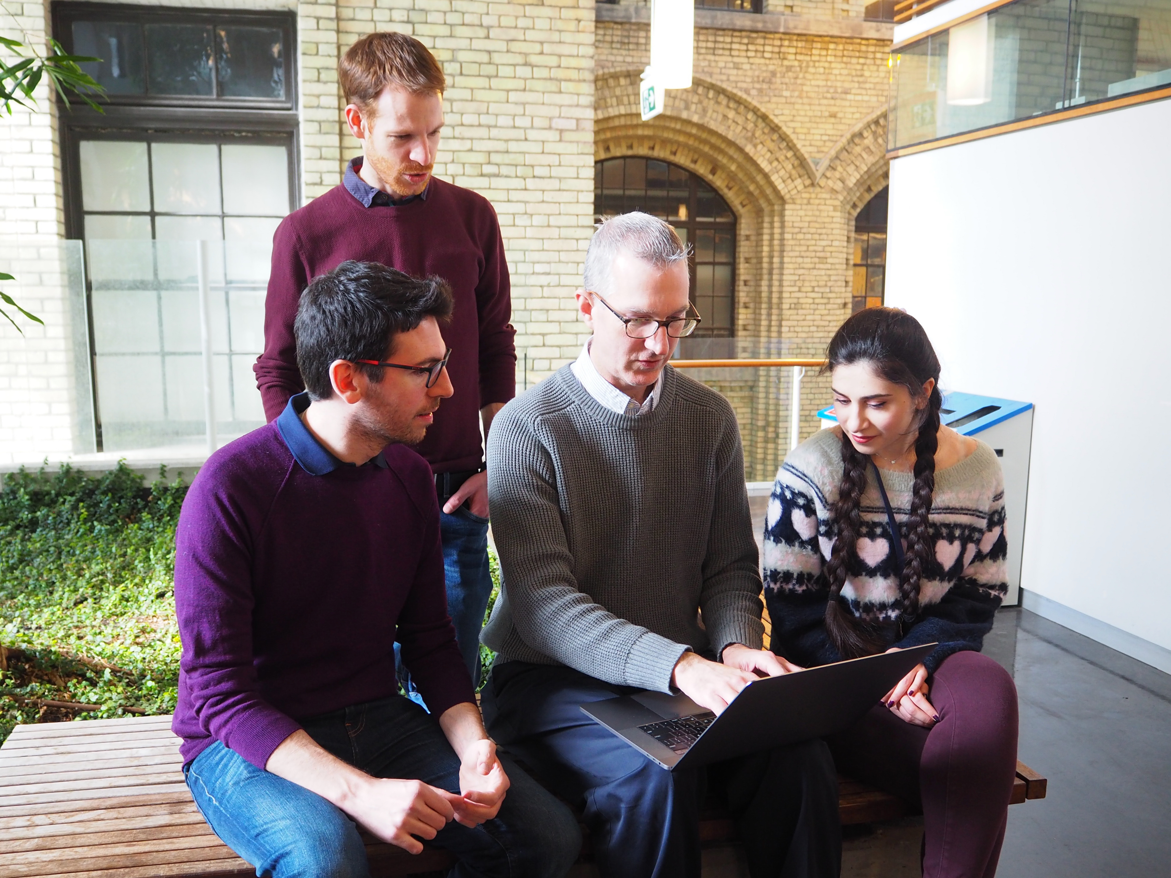 Image from left to right - research associates Thomas Gonatopoulos-Pournatzis, Michael Aregger (standing) and Kevin Brown with graduate student Shaghayegh Farhangmehr form the creative minds behind CHyMErA.