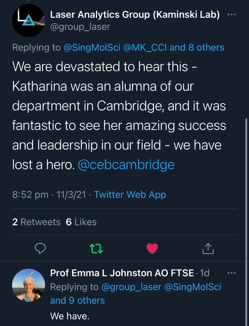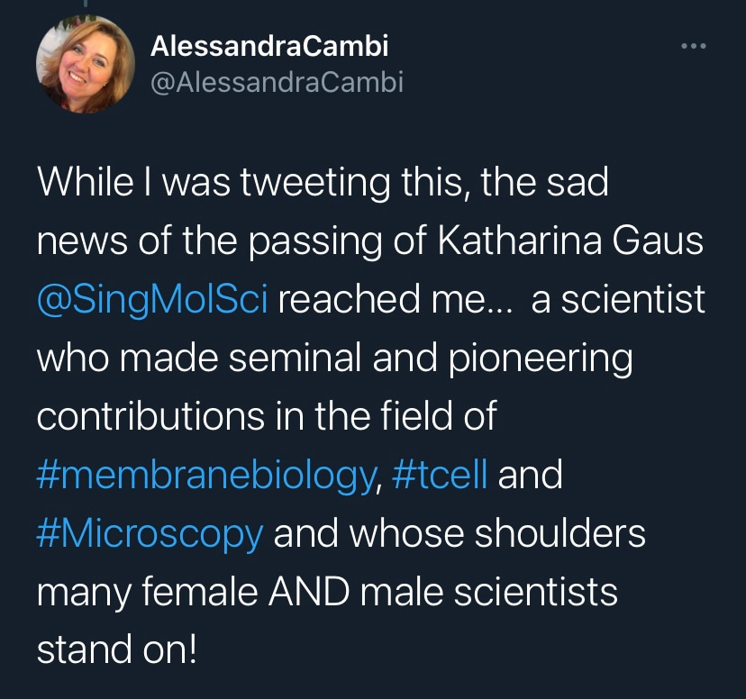 Vale Professor Katharina Gaus, a shining star in Single-Molecule Science.