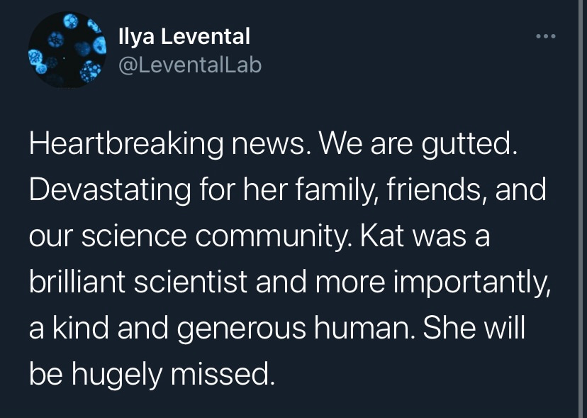 My first impressions when I first met Kat were strength, intellect and resolve. It seemed that she could make anything happen out of sheer will. That was true of her science, changing paradigms and creating things that did not exist. What I found most remarkable is that she used her magical power not to her own profit, but to benefit others, changing the institutions and ultimately the world. The department she created is the embodiment of a vision, not only a scientific direction, but an ideal workplace where people can thrive, a perfect mini-society. This was another strength of Kat, she did not bend the rules, she wanted to straighten them to fit both the ideal and the reality they served. Yet, as you got to know her, she revealed an unexpected candor and even fragility, freely sharing her mistakes, struggles and limitations. Then you realized that there is no magic in the power of resolve; it is hard work, and tireless effort to change things. As this time, will was not sufficient and disease won, it is up to us to keep the visions alive and take up the burden of changing the world. We will miss you, Kat.