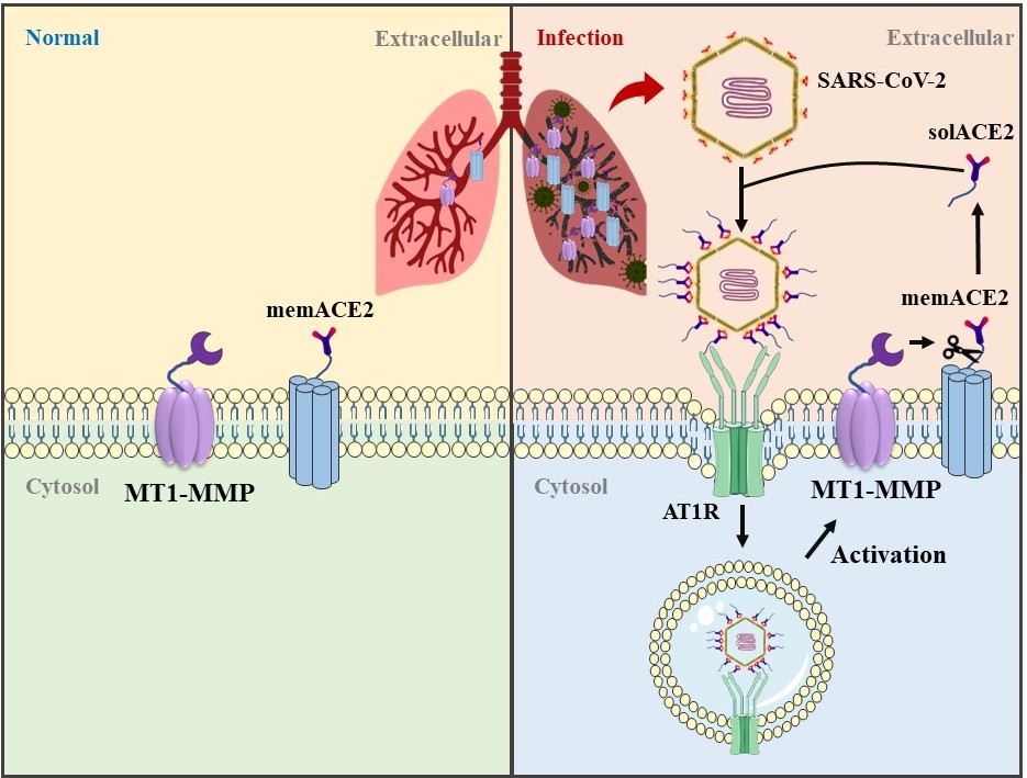 Figure 1. Graphical illustration shows the MT1-MMP-directed release of solACE2 that mediates the entry of SARS-CoV-2.