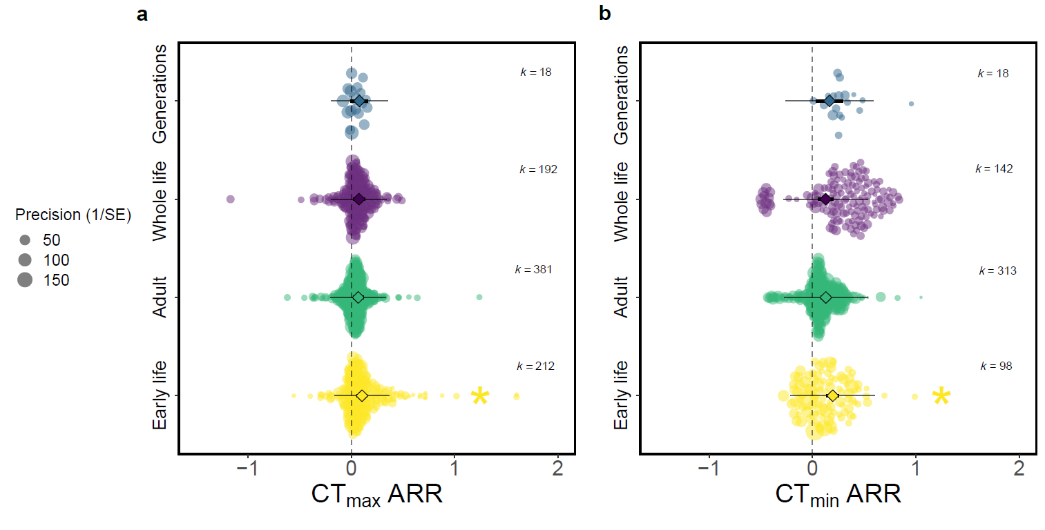 We then inputted these data into a meta-analytic model and added variables as moderators to explain any variation in acclimation ability.