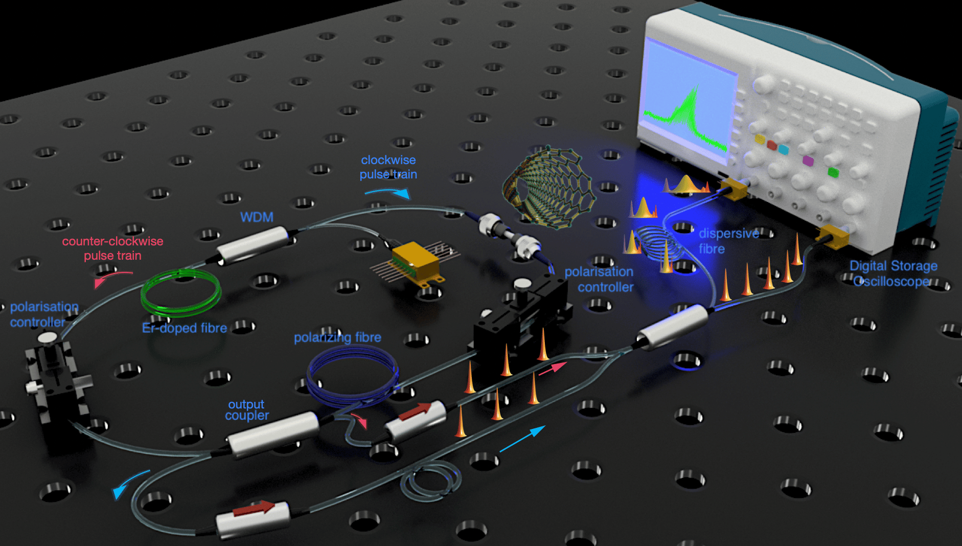 What’s next? Clearly, there is still a lot of work to be done to gather a deeper understanding of the dynamics of bidirectional mode-locked fibre lasers, and the physics of the interaction of counter-propagating pulses in general. We believe that our experimental techniques and observations will lay the groundwork for a more rigorous theoretical description of such systems, specifically when considering the role of nonlinear processes, gain and saturable absorption. In the meanwhile, we are continuing to study rotation and vibration sensitivity of our bidirectional laser system by using different laser generation regimes. We are quite optimistic and eager to share with the community some of our more recent results on advanced laser sensors that are waiting in the wings!
