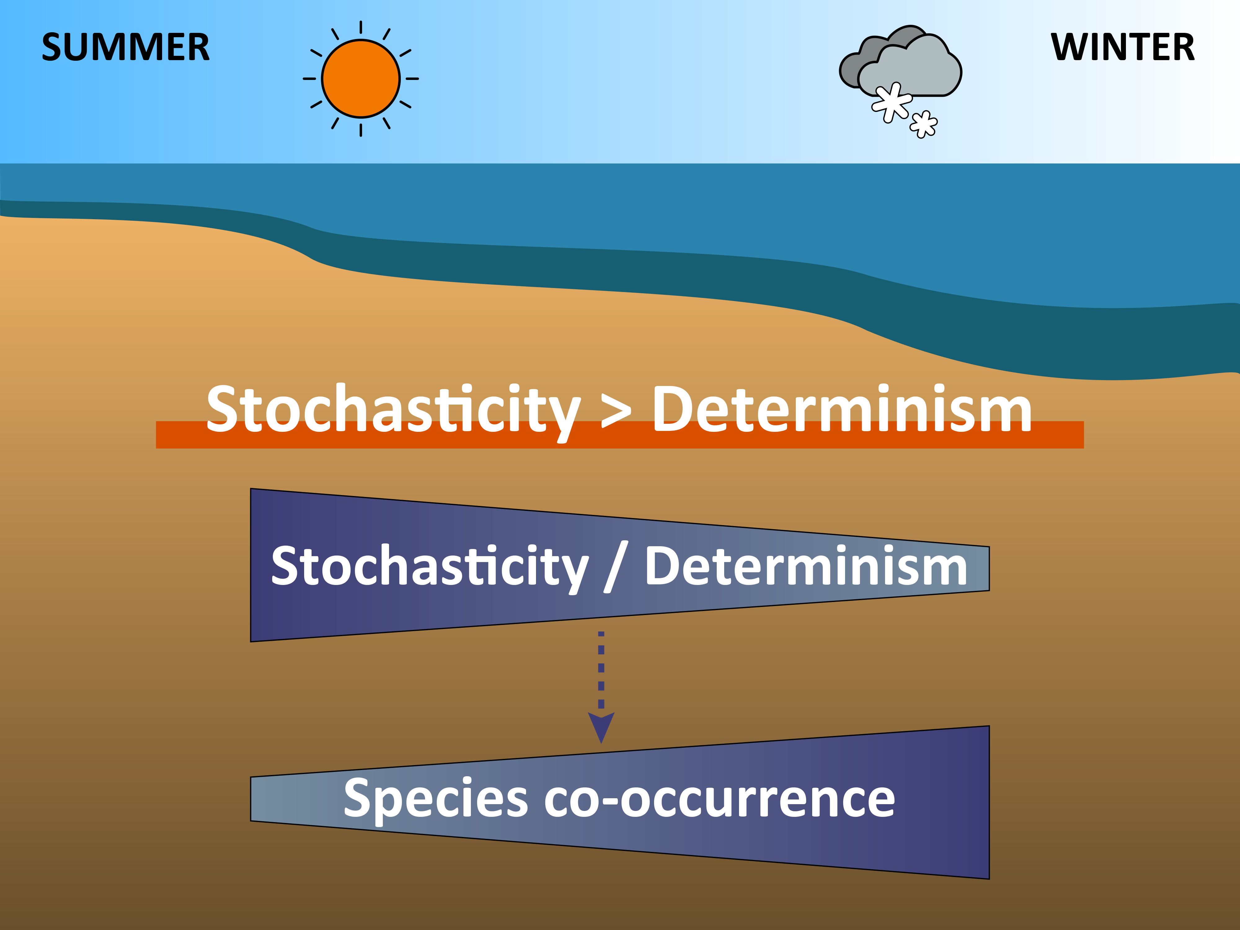 A conceptual diagram showing shifts in assembly mechanism and co-occurrence pattern between different seasons