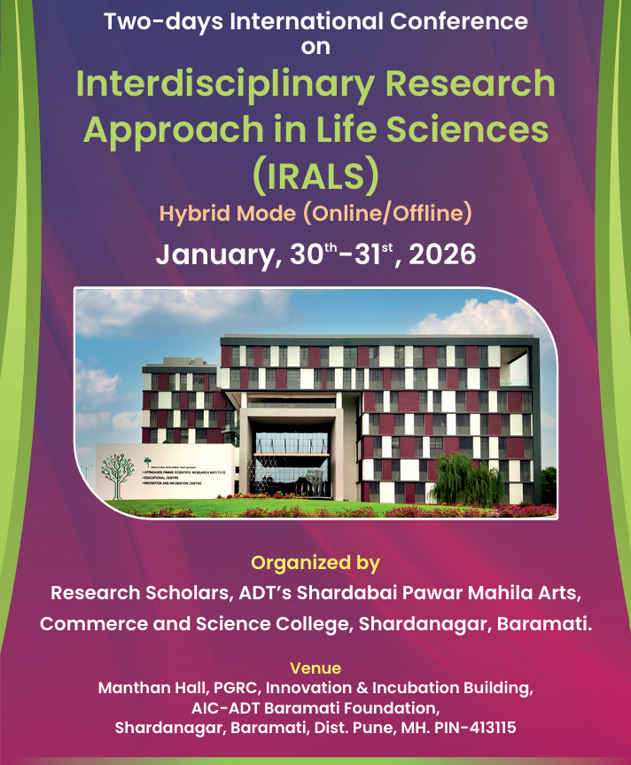 A unique and first of its-kind initiative, Research Scholars of Shardabai Pawar Arts, Commerce and Science College are proud to present Two-day International Conference on Interdisciplinary Research Approach in Life Sciences (IRALS), to be held at Baramati, the modern education hub of Maharashtra.
