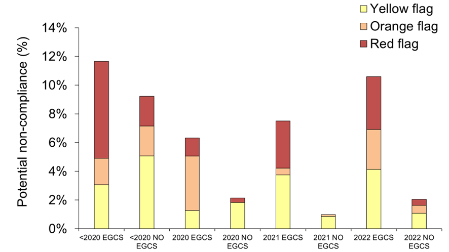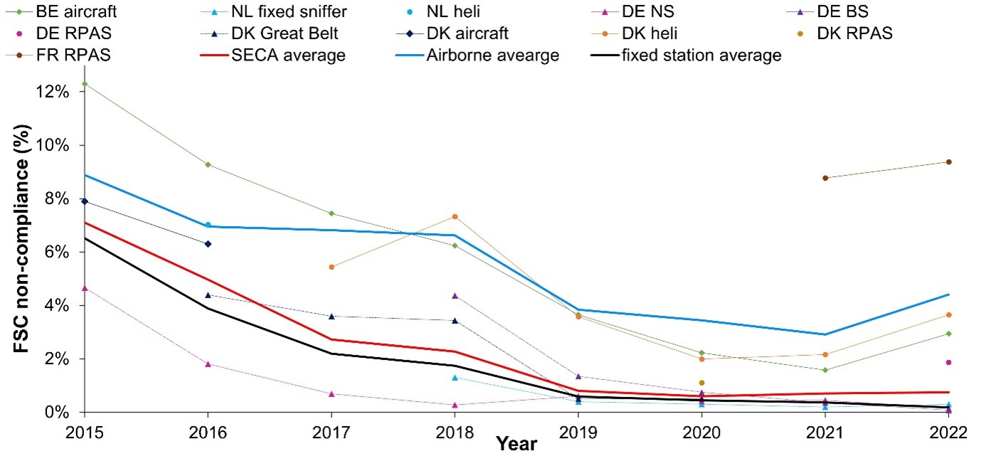 Figure 5. Evolution of potential non-compliance in the European SECA.