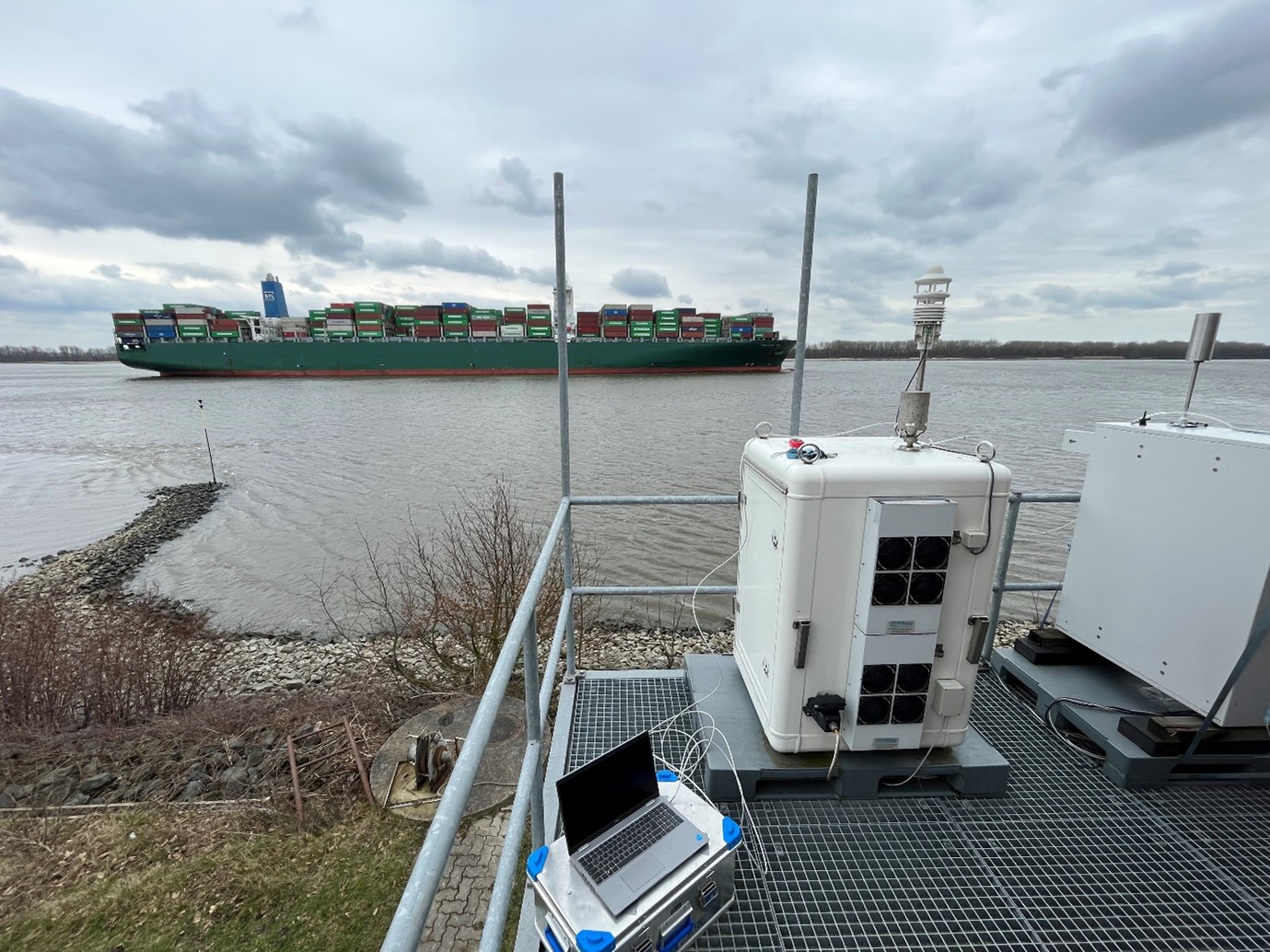 Figure 1. Fixed sniffer measurement station on the Elbe river, toward Hamburg