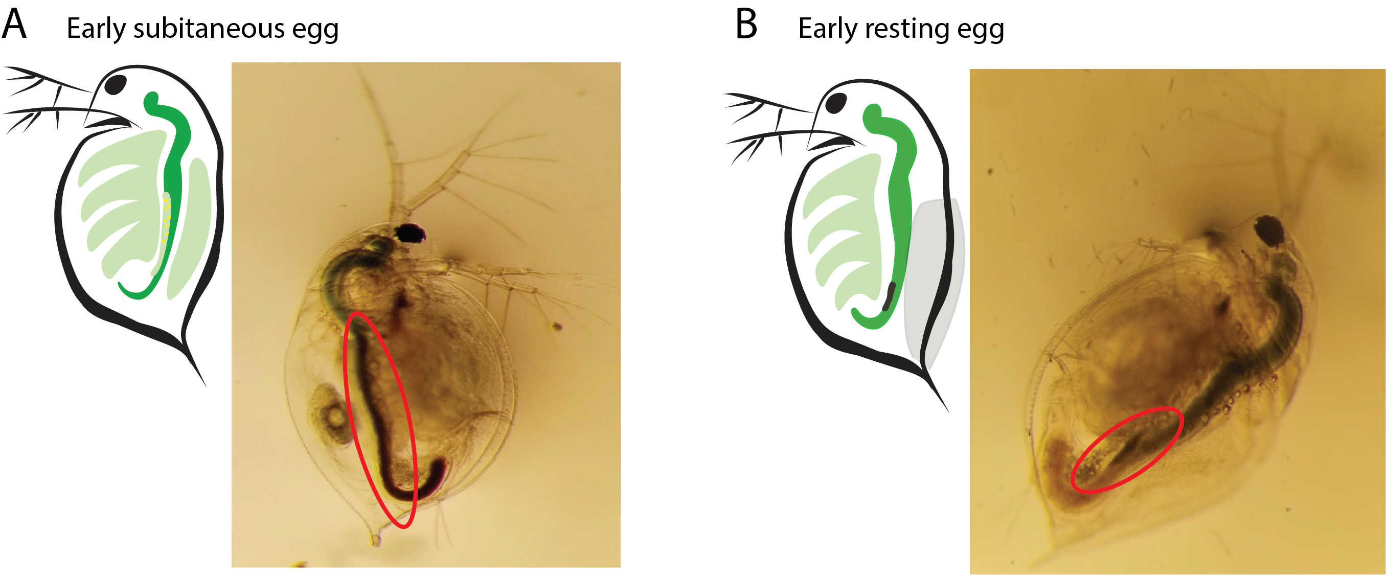 Figure 2. (A) Early subitaneous egg and (B) early resting egg production.