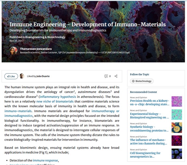- Jeewandara T.M., Immune Engineering - Development of Immuno-Materials, Nature Research Communities, SpringerLink, Access: https://communities.springernature.com/posts/immune-engineering-development-of-immuno-materials 2017