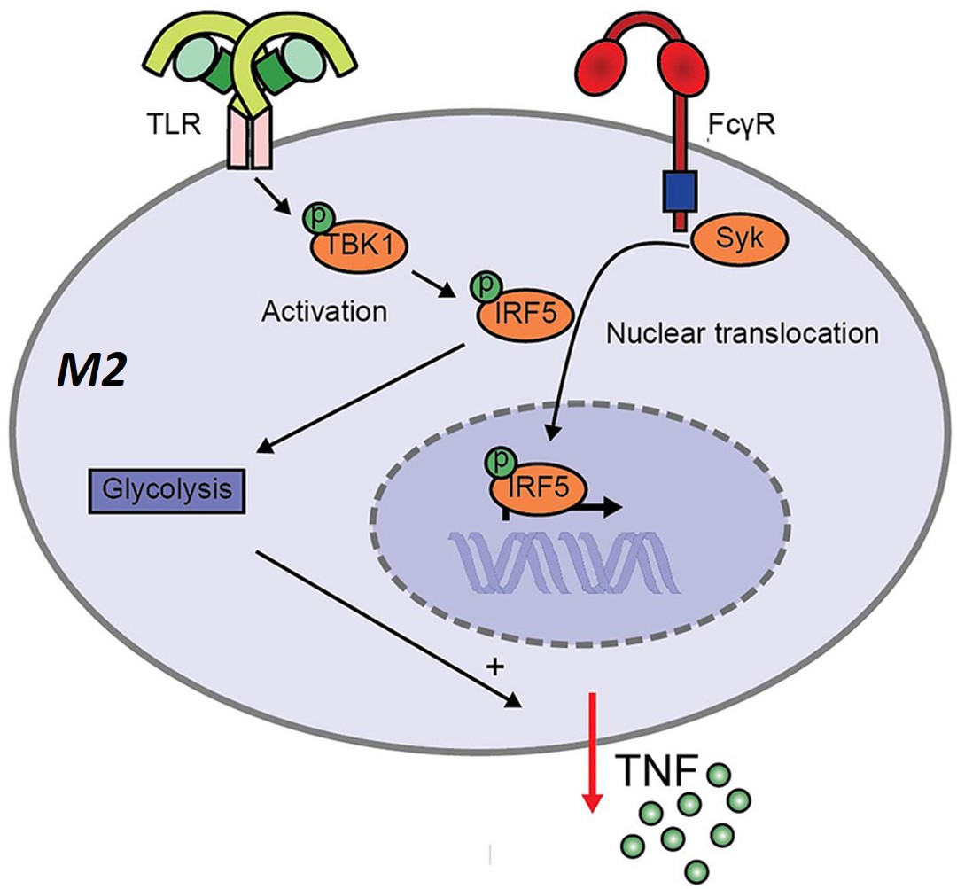 - Hoepl W. et al. FcγR-TLR Cross-Talk Enhances TNF Production by Human Monocyte-Derived DCs via IRF5-Dependent Gene Transcription and Glycolytic Reprogramming, Frontiers in Immunology, 2019