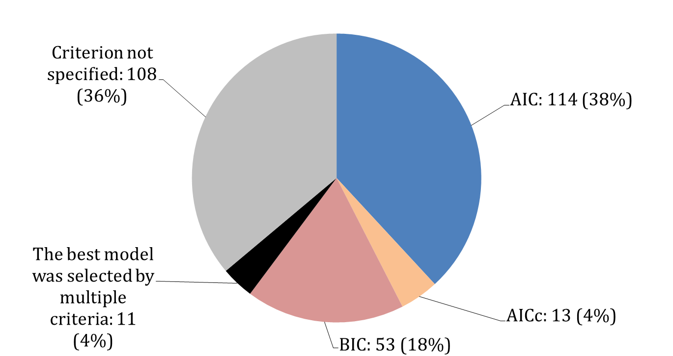 The choice of Model Selection criteria in 300 studies that were done during 2017-2018