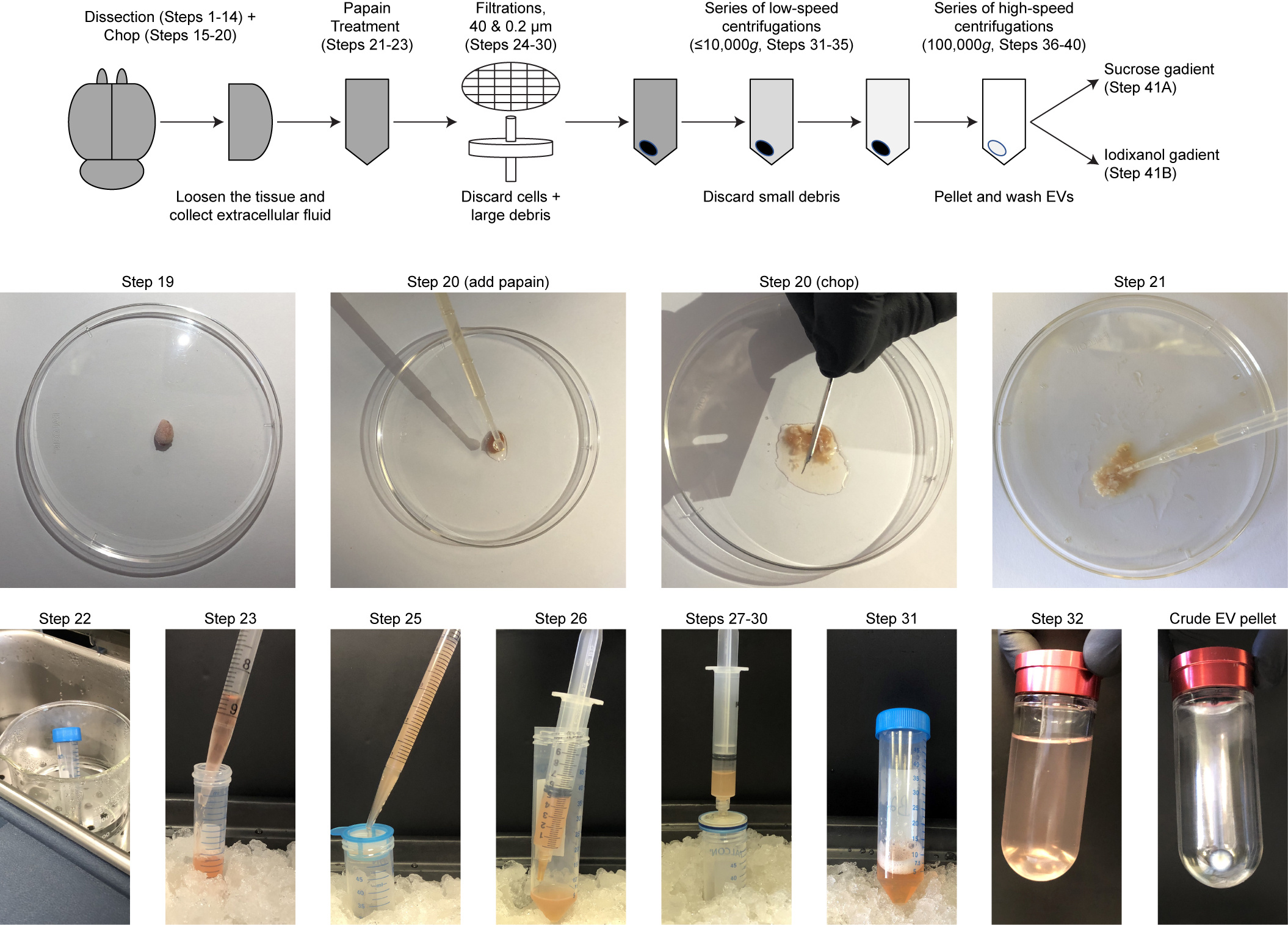 Figure 2. Overview of the first steps of brain EV isolation. The full, detailed protocol is available in D'Acunzo et al., 2022.