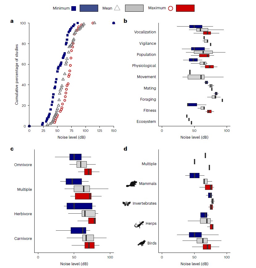 Our review further suggests that inequitable noise can impact urban wildlife. We found that as noise exposure increases to 90 dB+ (levels more commonly found in redlined neighborhoods), the biological effects on urban wildlife intensify, leading to altered behavior and physiology, fitness consequences, and population declines across a variety of taxa. For example, 72% of population-level studies reported reduced wildlife abundance and 93% of vocalization studies observed changes in vocal behavior, particularly in urban birds.